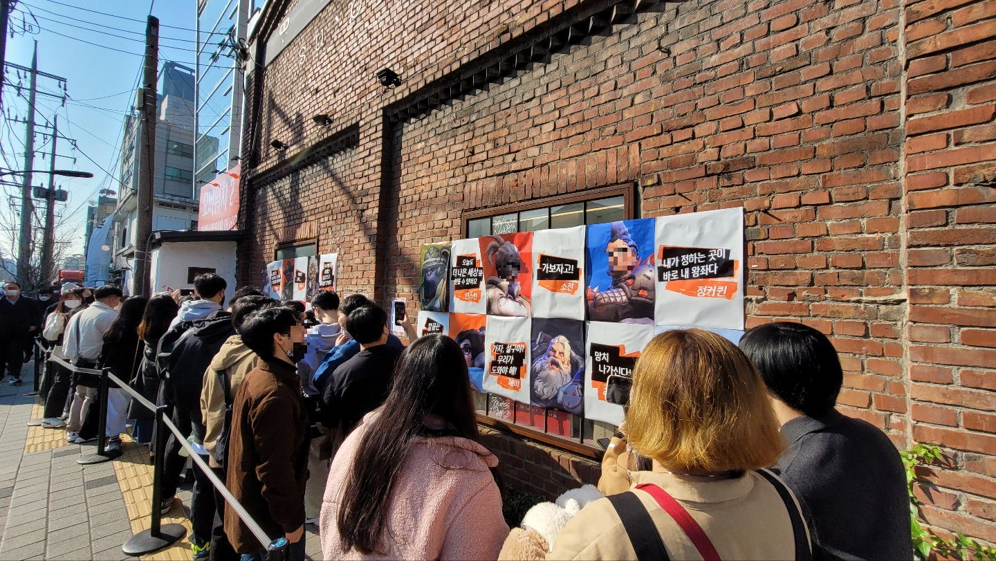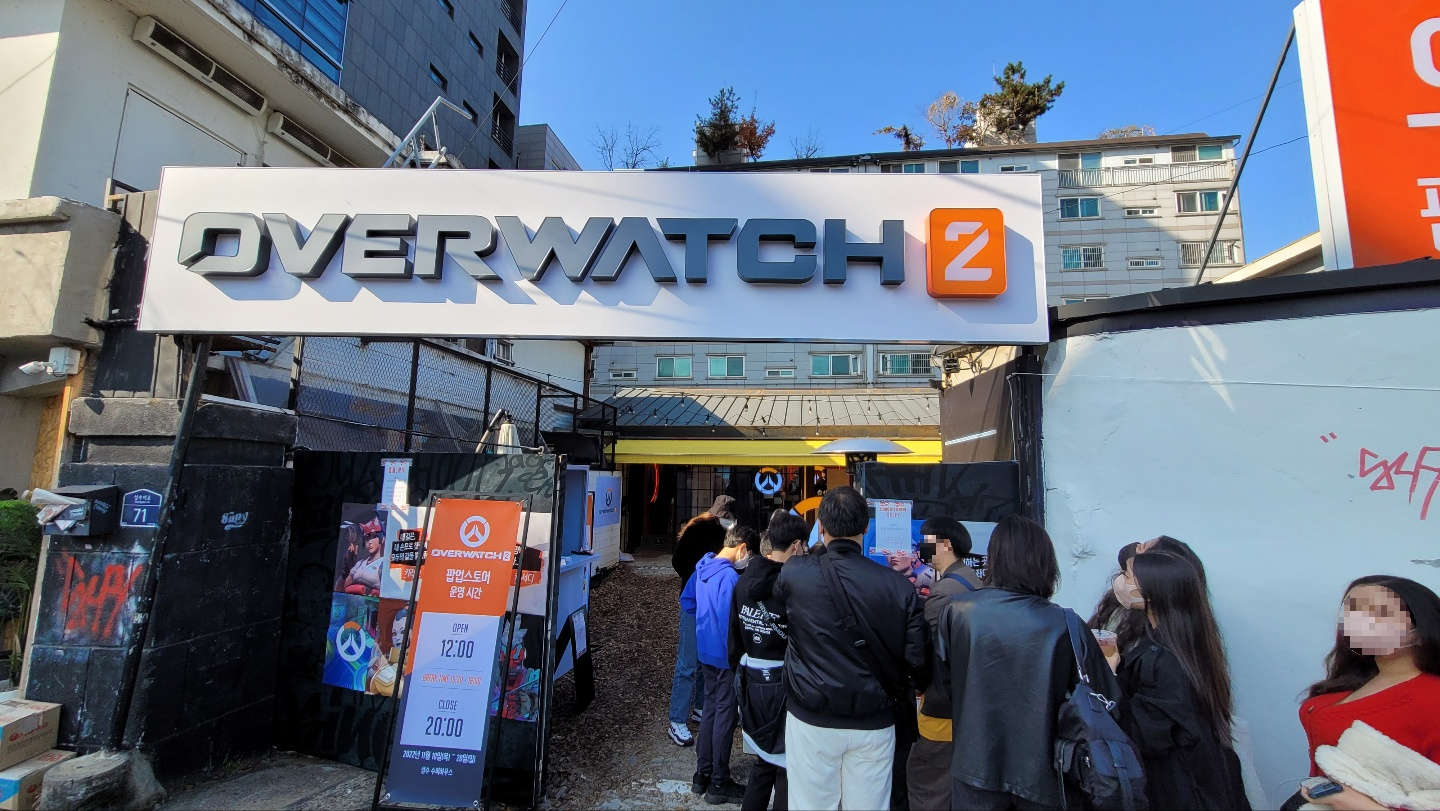 성수동 직장인이 전하는 성수 나우! 오늘은 성수동에서 진행 중인 블리자드 오버워치 2 팝업스토어에 대해 알려드리겠습니다. 회사 근처라 출/퇴근길 오가다 구경하는 곳입니다. 아침엔 대문이 닫혀 있는데, 저녁 시간엔 문이 열린 모습을 볼 수 있습니다. 저는 게임을 하진 않지만, 팝업스토어 근처에 있기 때문에 혹시나 현장 상황이 궁금하신 분들을 위해 남겨드립니다^^