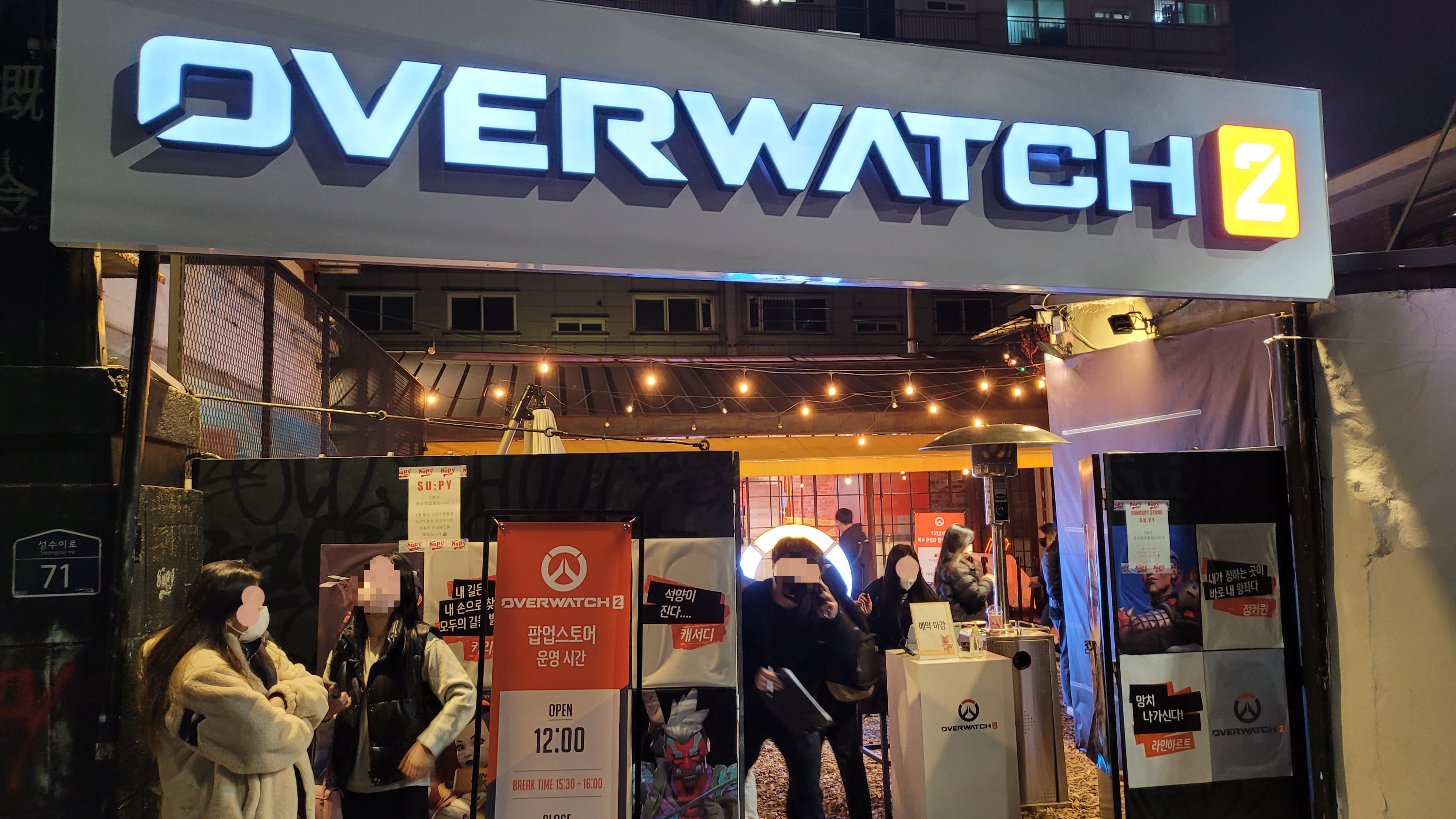 성수동 직장인이 전하는 성수 나우! 오늘은 성수동에서 진행 중인 블리자드 오버워치 2 팝업스토어에 대해 알려드리겠습니다. 회사 근처라 출/퇴근길 오가다 구경하는 곳입니다. 아침엔 대문이 닫혀 있는데, 저녁 시간엔 문이 열린 모습을 볼 수 있습니다. 저는 게임을 하진 않지만, 팝업스토어 근처에 있기 때문에 혹시나 현장 상황이 궁금하신 분들을 위해 남겨드립니다^^