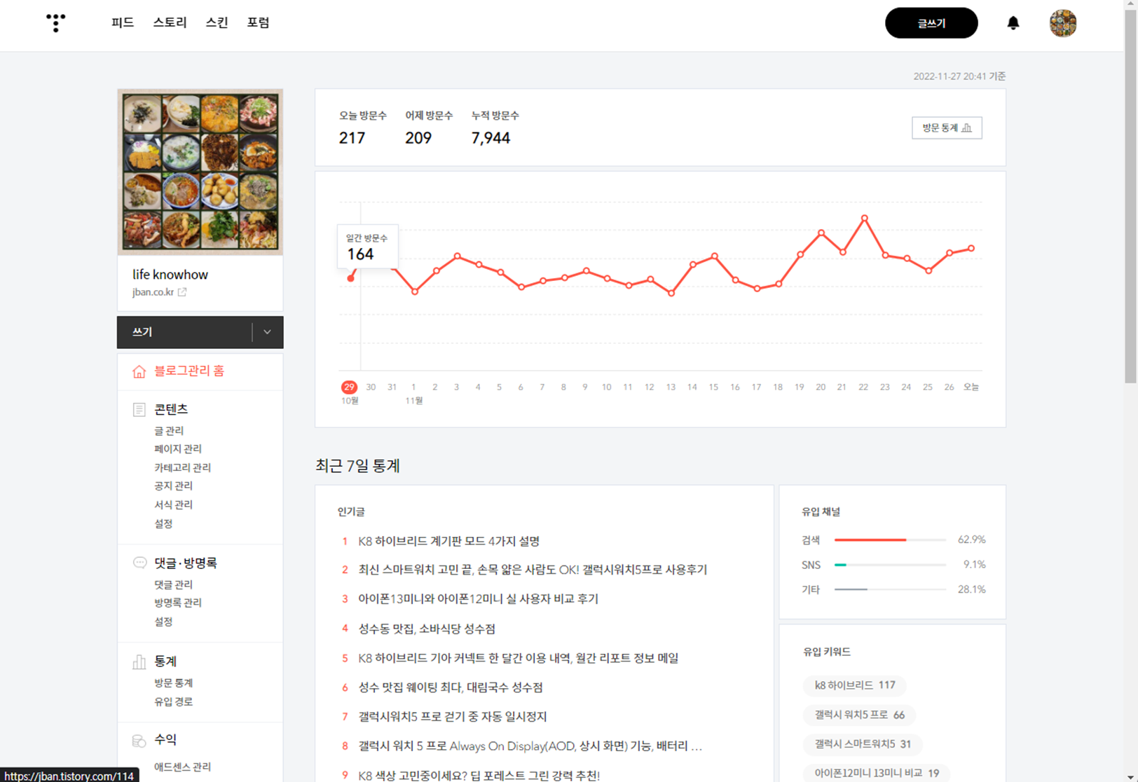 - 누적 방문수(22.09.18~22.11.27) : 7,944