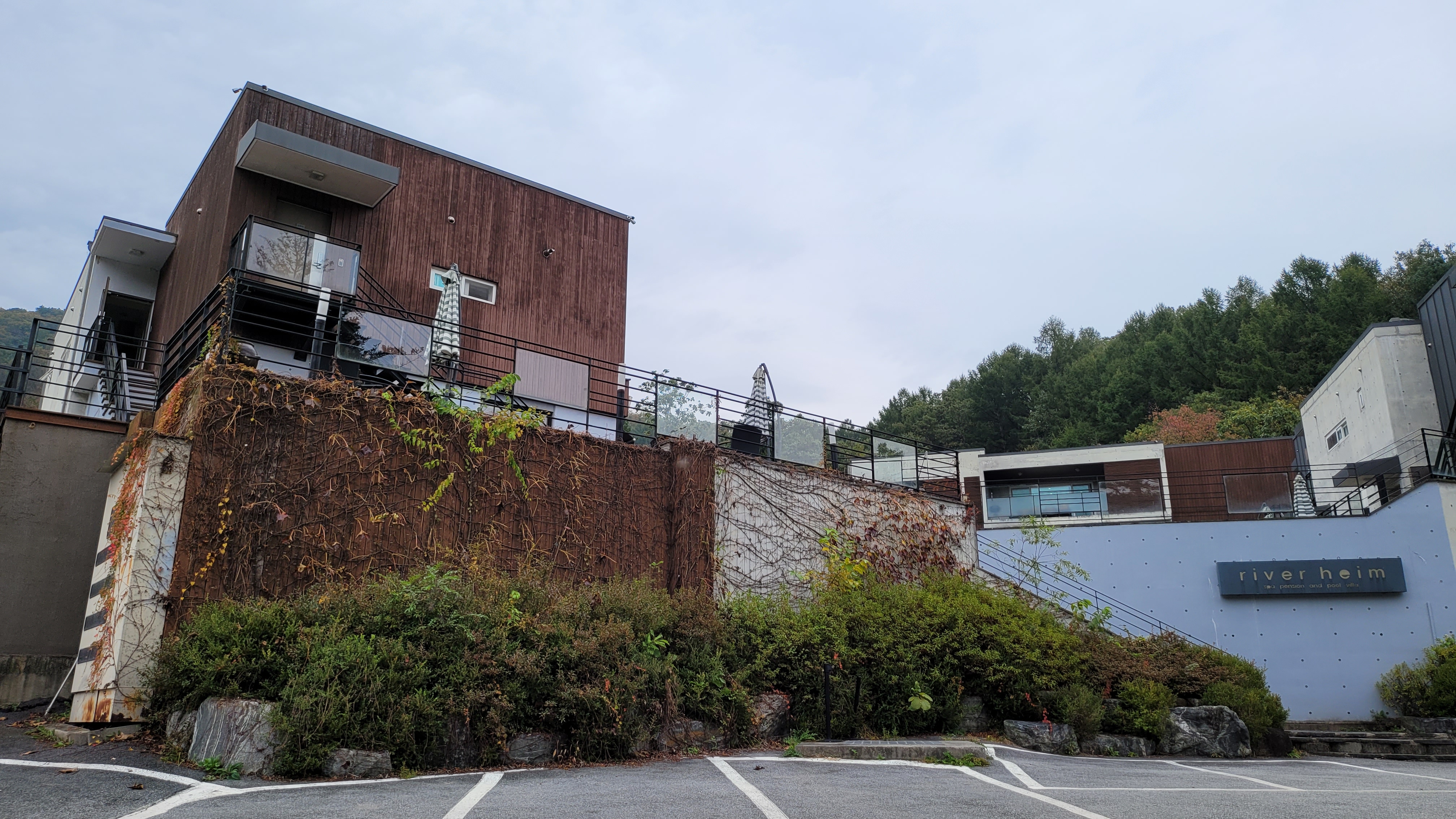 정면으로 보이는 곳이 가평 리버하임 인포메이션 센터와 저희가 숙소로 사용할 5동이 보입니다. 워낙 넓어서 주차 걱정은 안해도 되는데요. 다만 입구가 좁고 입구 주변 양옆이 바위로 둘러싸여 있기 때문에 들어오고 나갈 때 정말 주의해야 합니다. 펜션 측에서 이유가 있으시겠지만, 낮에도 걱정되는데 당일치기로 밤에 나가시는 분들 꽤 힘들었다고 합니다. 포르셰 타시는 우리 부사장님ㅠㅠ (겨우 겨우 안 긁고 나가셨다는)