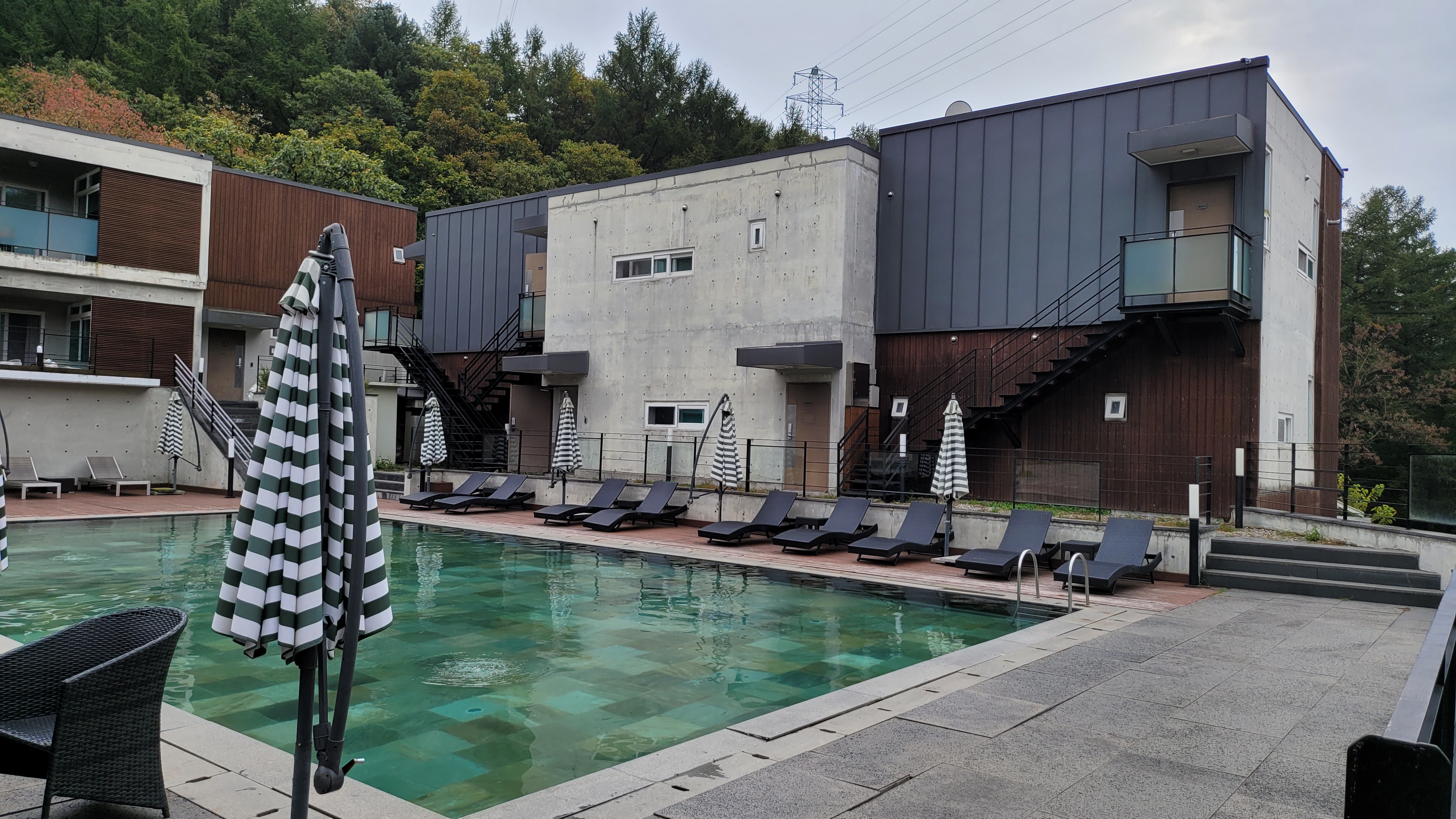 가평 리버하임 풀빌라!! 풀빌라답게 숙소 앞에 널찍한 풀빌라가 있습니다. 10월 셋째 주인데 주말에는 온수를 틀어 주신다고 하셨습니다. 평일에는 10만 원가량 지불할 경우 온수 풀을 이용할 수 있다고 하는데요. 혹여 워크숍에서 술 마시고 사고 날까 봐 수영 얘기는 직원들에게 꺼내지 않았습니다. 행사 주관자 입장에서 절대 안전! 만큼 중요한 게 없죠. 특히나 백화점 출신인 제게는 '안전관리'를 하는 건 '필수'입니다. 온수가 얼마나 따뜻할지 모르겠지만, 정말 운치 있을 것 같습니다. 제가 워크숍 1주일 전 주말에 답사를 다녀갔는데요. 여기 말고 다른 동에서 프라이빗 풀파티가 한창인 곳도 있었어요. 저도 조금 젊었을 때엔 친구들과 파티도 하고 그랬었죠^^;;;