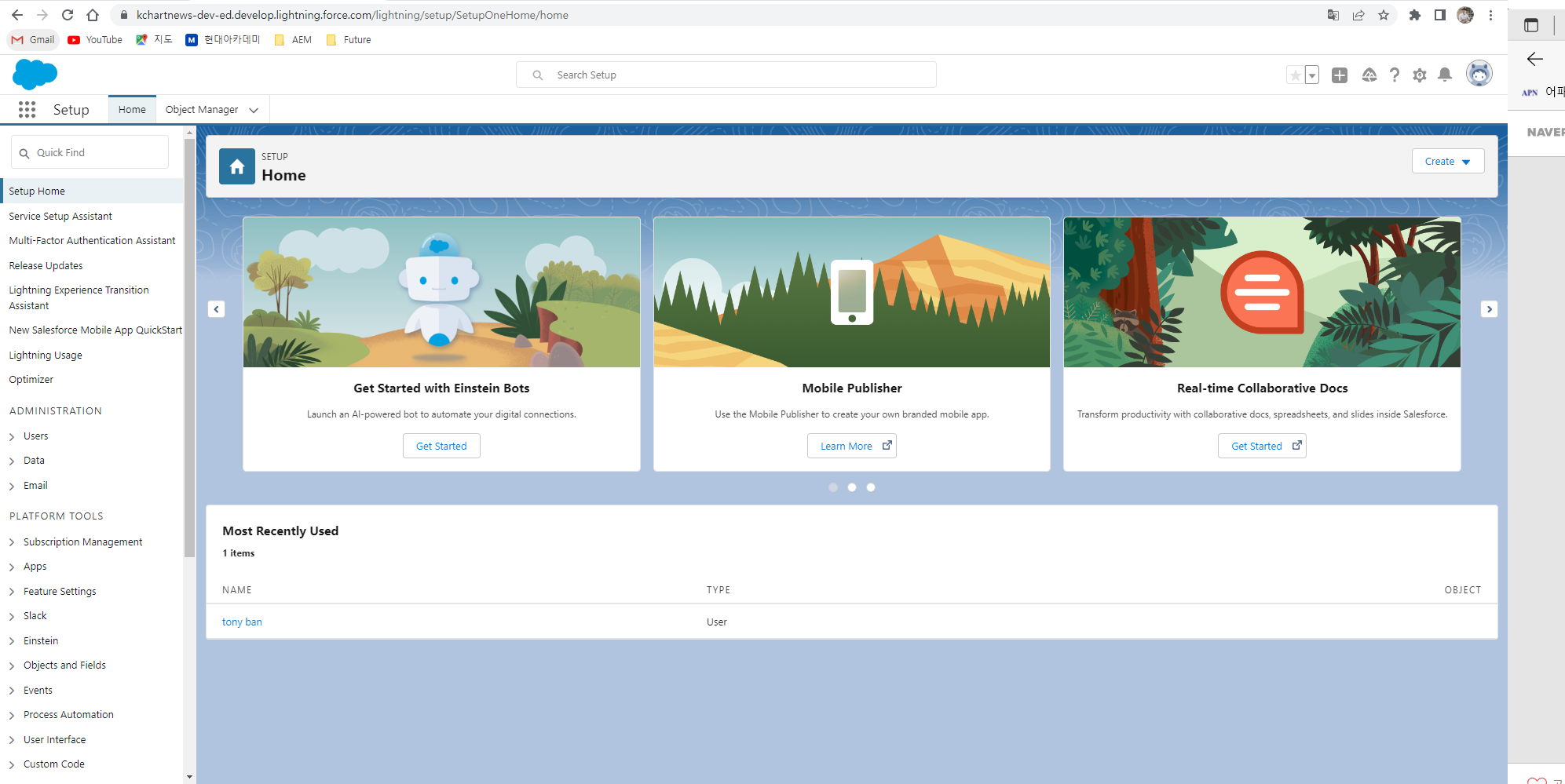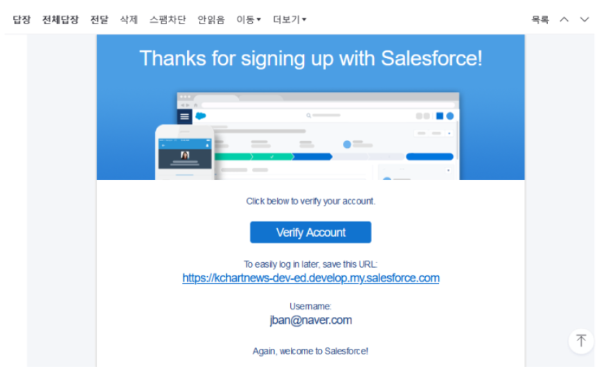 눈치채신 분들도 계시겠지만, 앞서 회원 가입 때 기재한 회사명이 앞으로 제가 사용할 세일즈포스의 주소명이 됩니다.