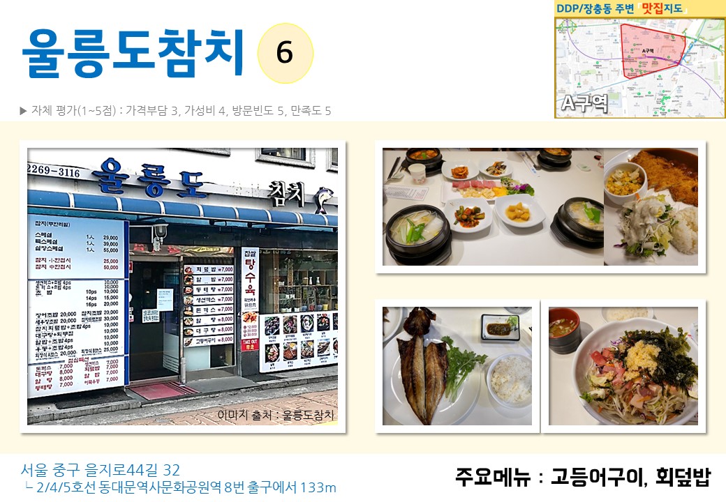 3호선 동대입구역 2번 출구 태극당쪽으로 나오시면 거의 다 맛집이구요. CJ제일제당 근처에도 맛집들이 있습니다.