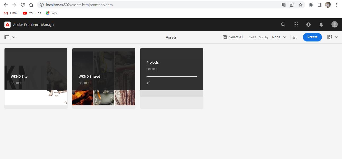 ※ 위 작업을 마치면 아래와 같이 AEM Cloud에 샘플 폴더와 자산들이 생성됨