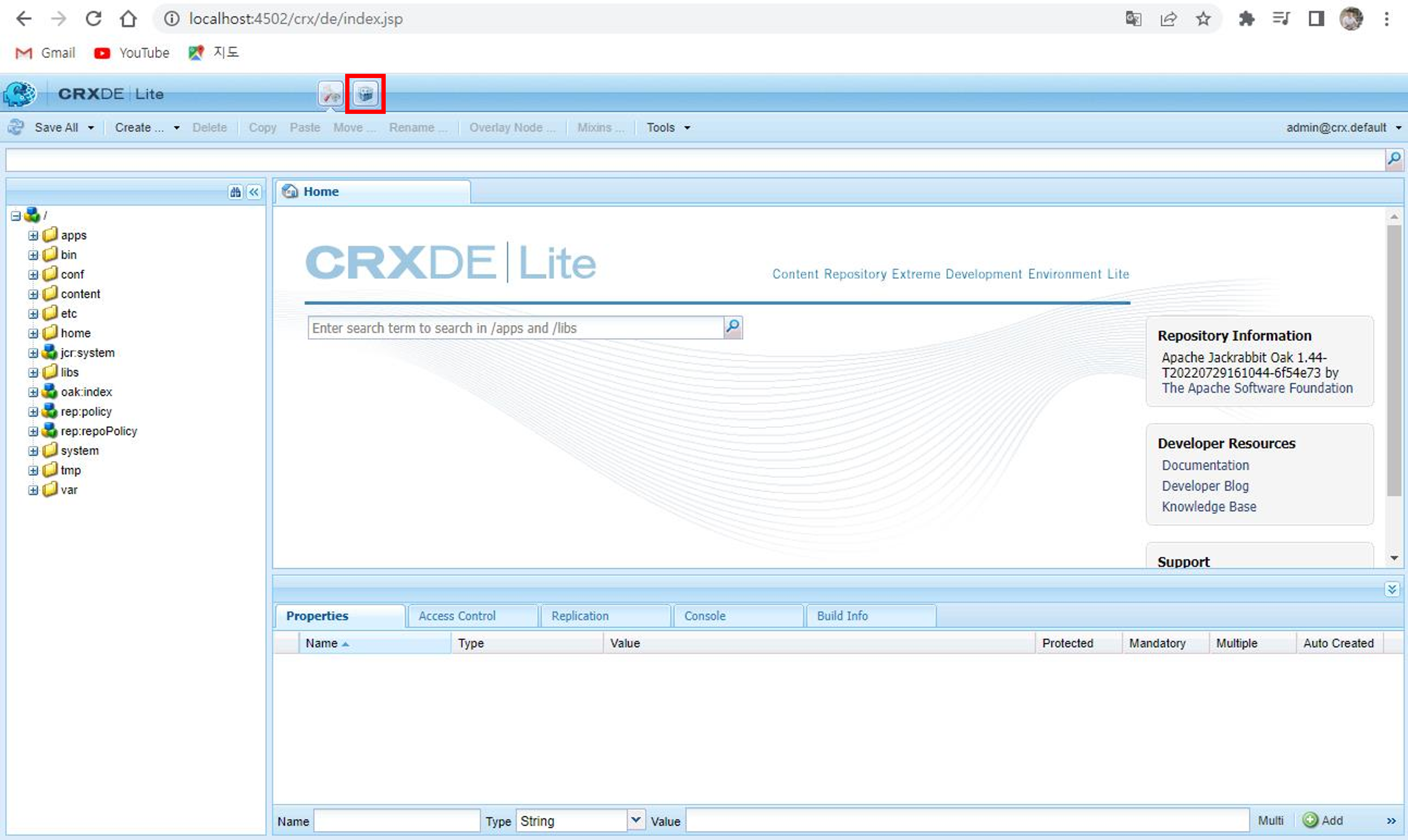 9. AEM 접속 후 CRXDE Lite에 샘플파일 설치