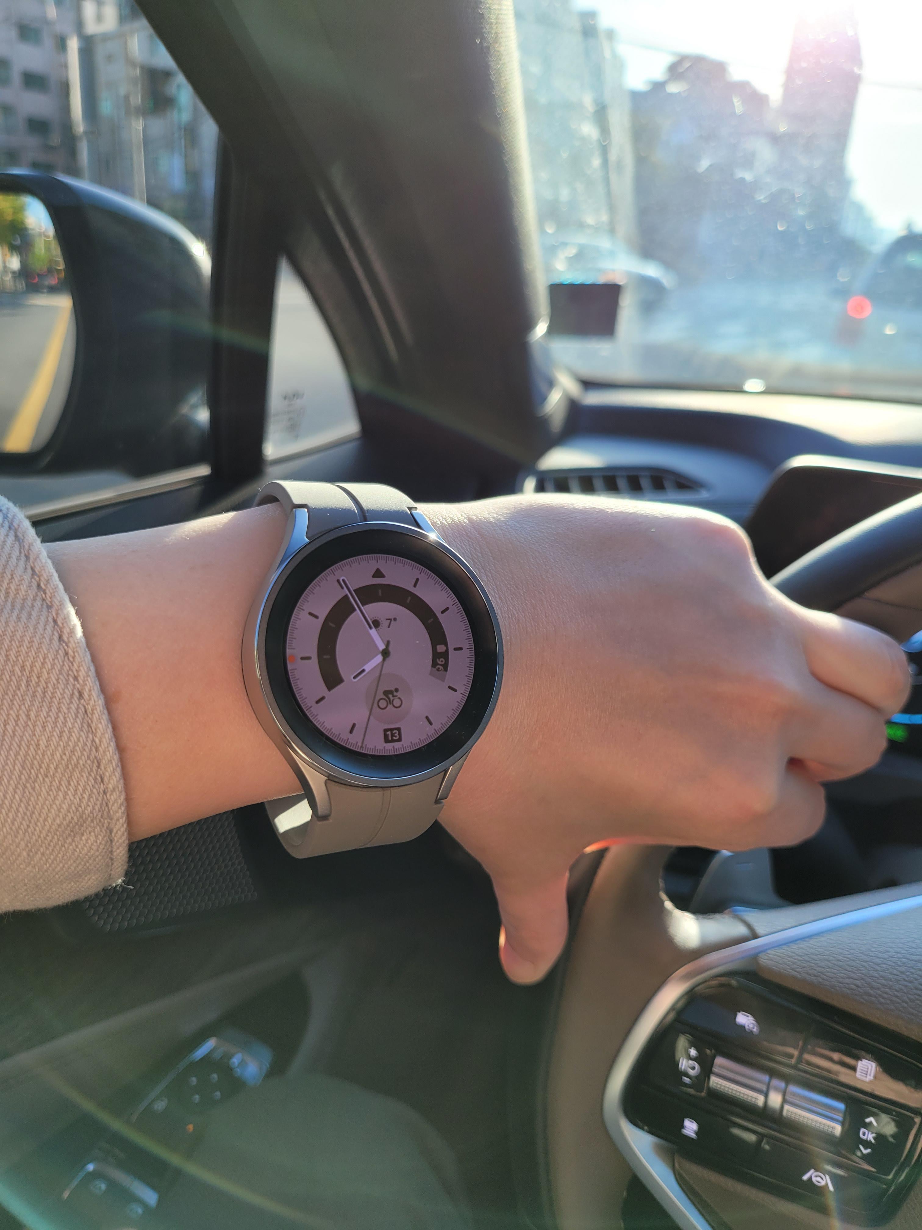 갤럭시워치5프로가 크다지만, 커다란 남성용 시계만 하니까 못 찰 정도의 거대함은 아닙니다.