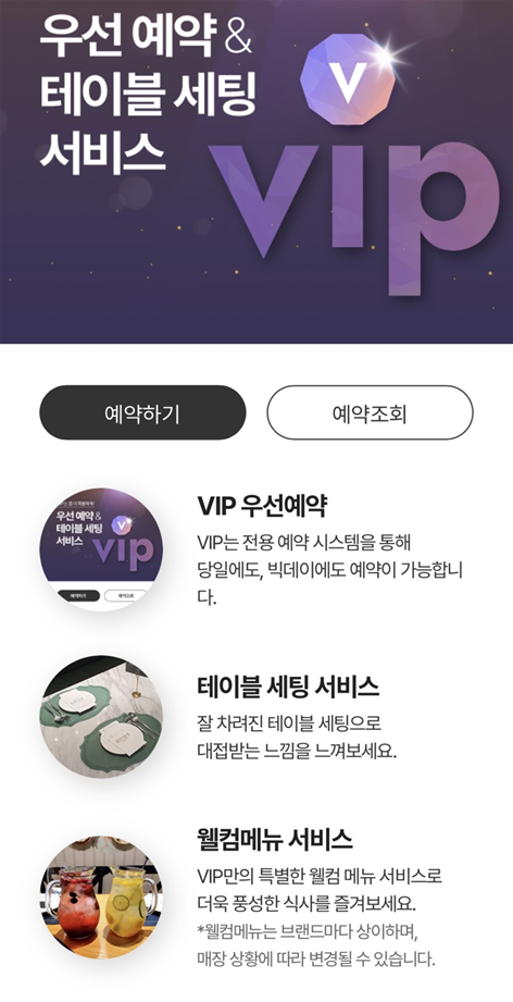 저희처럼 애슐리 고정고객이 아니고 일회성으로 이용하는 분들도 애슐리 앱을 깔고 캐시를 이용한다면 할인 혜택을 조금이라도 받으실 수 있을 것 같습니다. 참, 애슐리 VIP 등급에 선정되면, 추가 혜택이 있는데요. 저는 당일 예약이 된다는 부분이 가장 메리트 있는 것 같습니다.