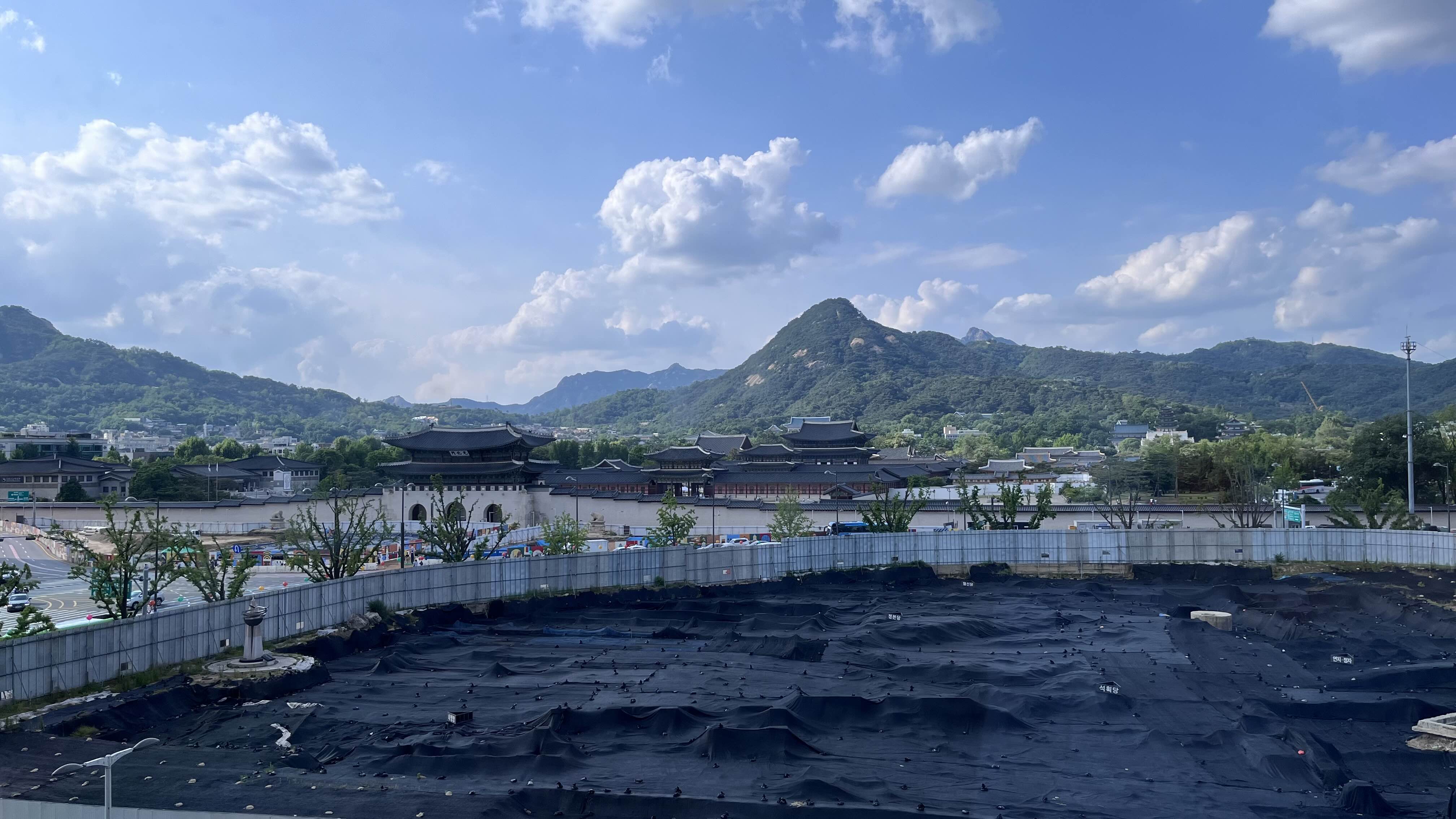 사진 하단은 광화문 바로 앞에 있는 조선시대 최고의 의정기관인 의정부 터입니다. 현재 복원공사를 하고 있는 모습니다.