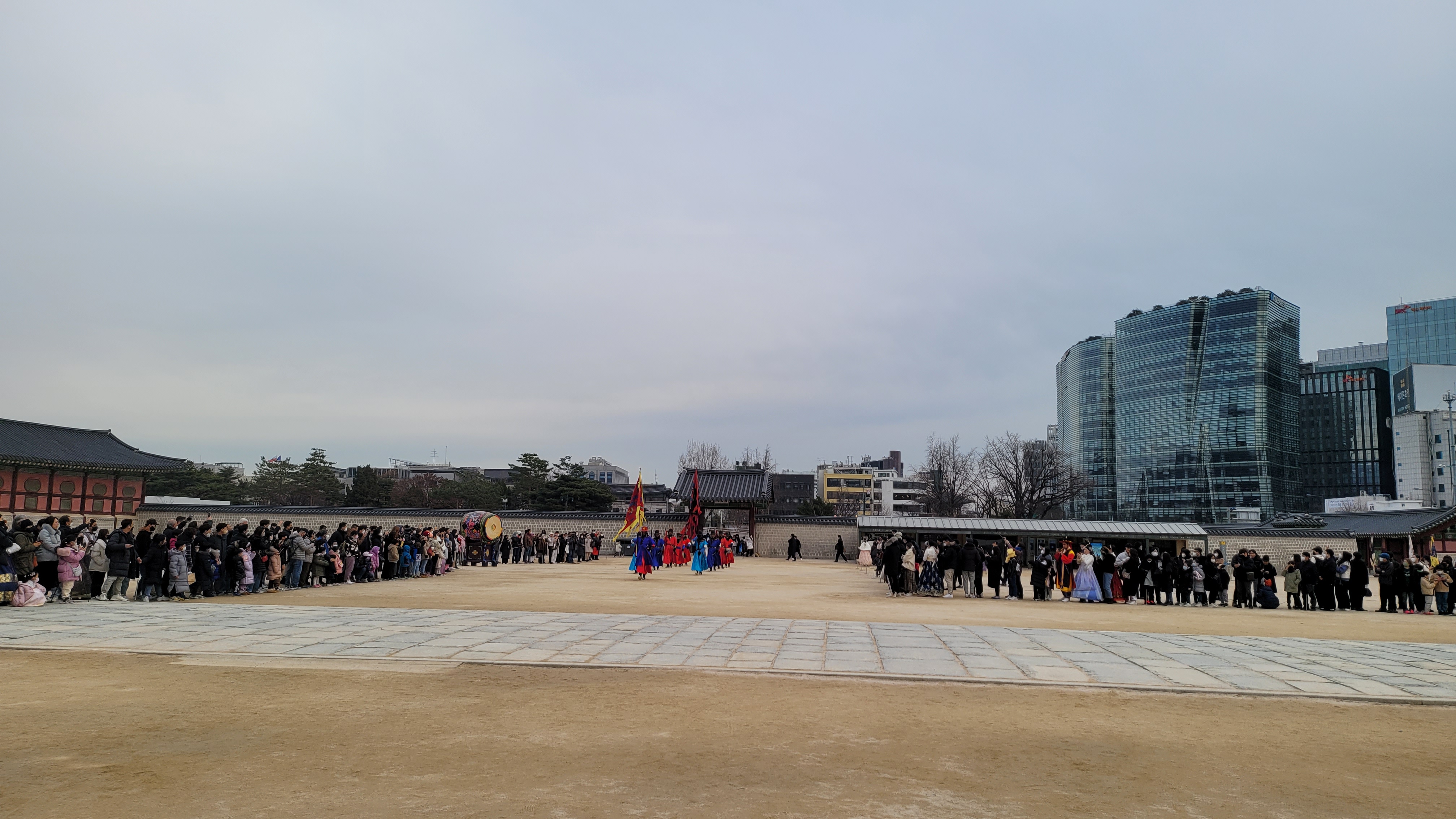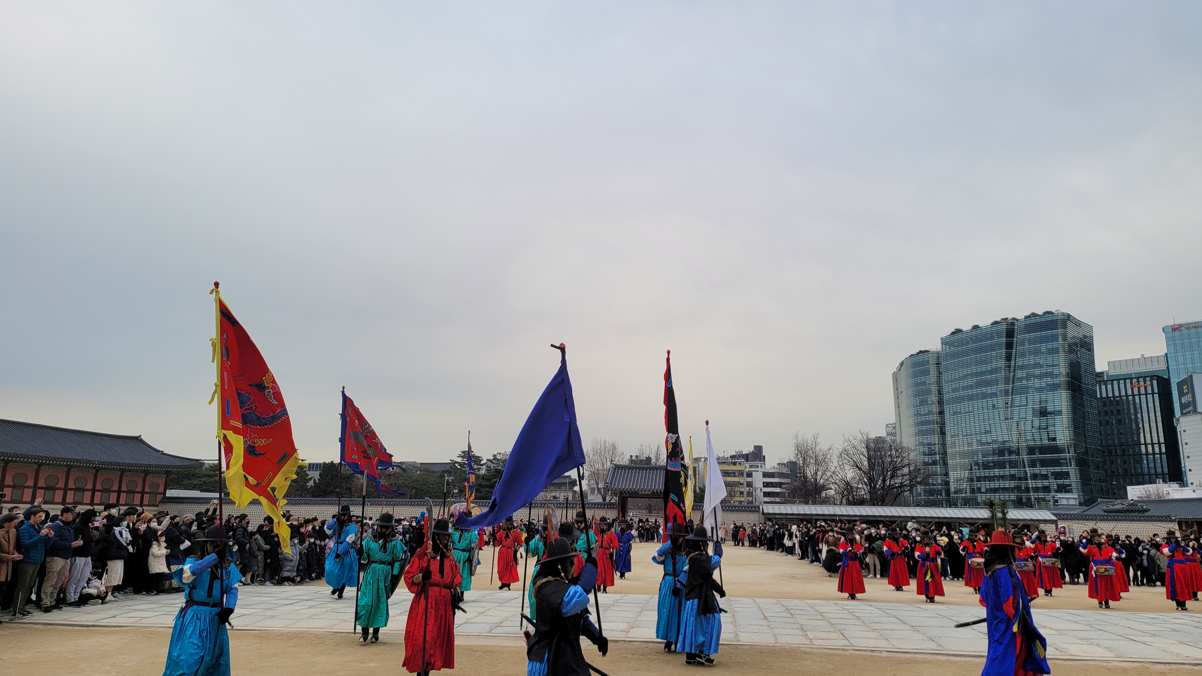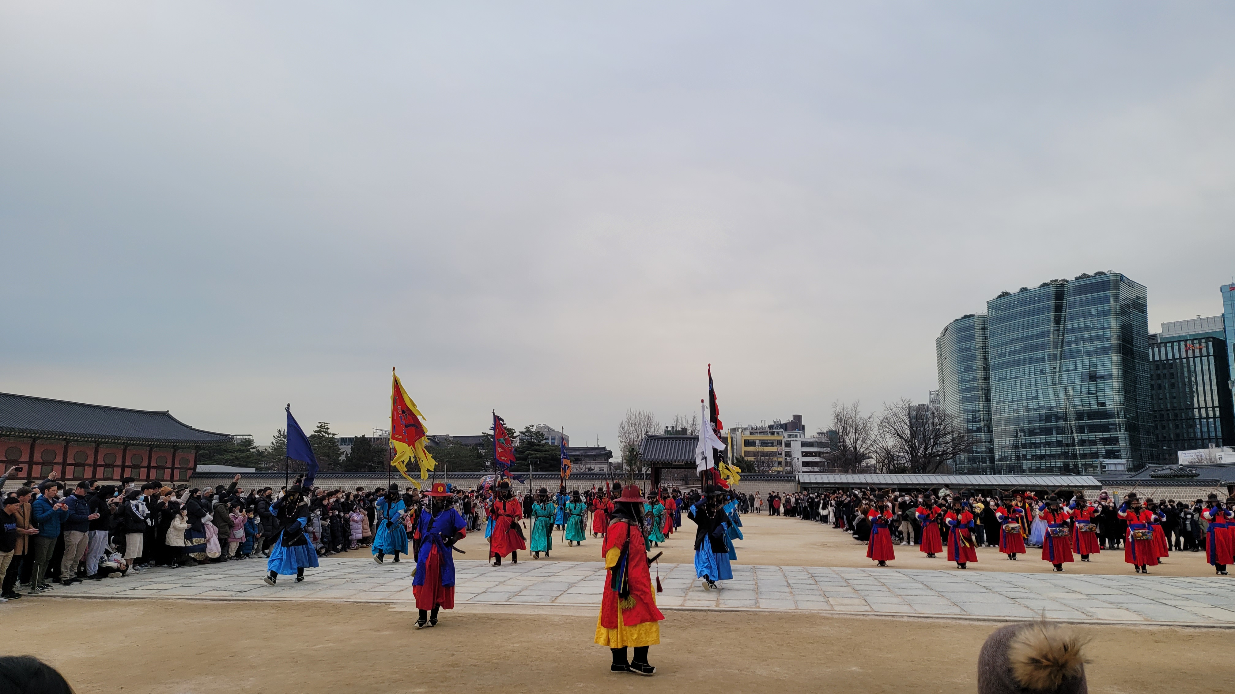 외국 관광객들이 가장 관심 있게 보는 것 중 하나가 경복궁 수문장 교대의식입니다. 매일 오전 10시와 오후 2시에 약 15분간 진행되는데요. 한국어, 영어, 일어, 중국어로 안내되기 때문에 외국인들이 구경하기에도 좋은 프로그램입니다.