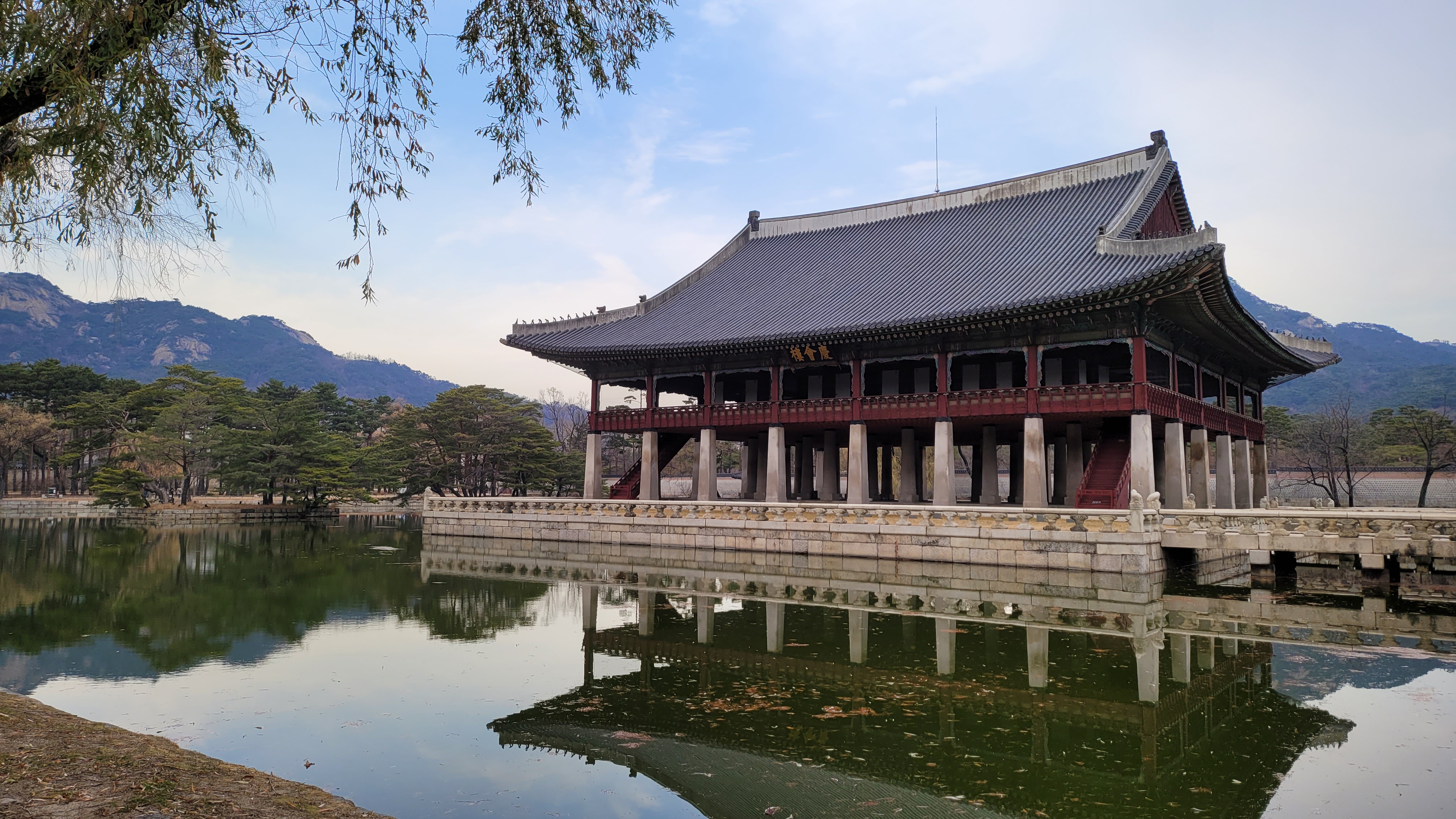 왕이 신하들과 연회를 베풀거나 외국 사신이 왔을 때 대접하던 곳인데요. 임진왜란 때 불타 돌기둥만 남아 있었으나 1867년에 재건된 곳입니다. 단일 건물로 우리나라에 현존하는 가장 큰 전통 목조 건물이기도 합니다. 지금은 바뀌었지만 예전만 원짜리 지폐 뒷면에 있던 건물입니다.