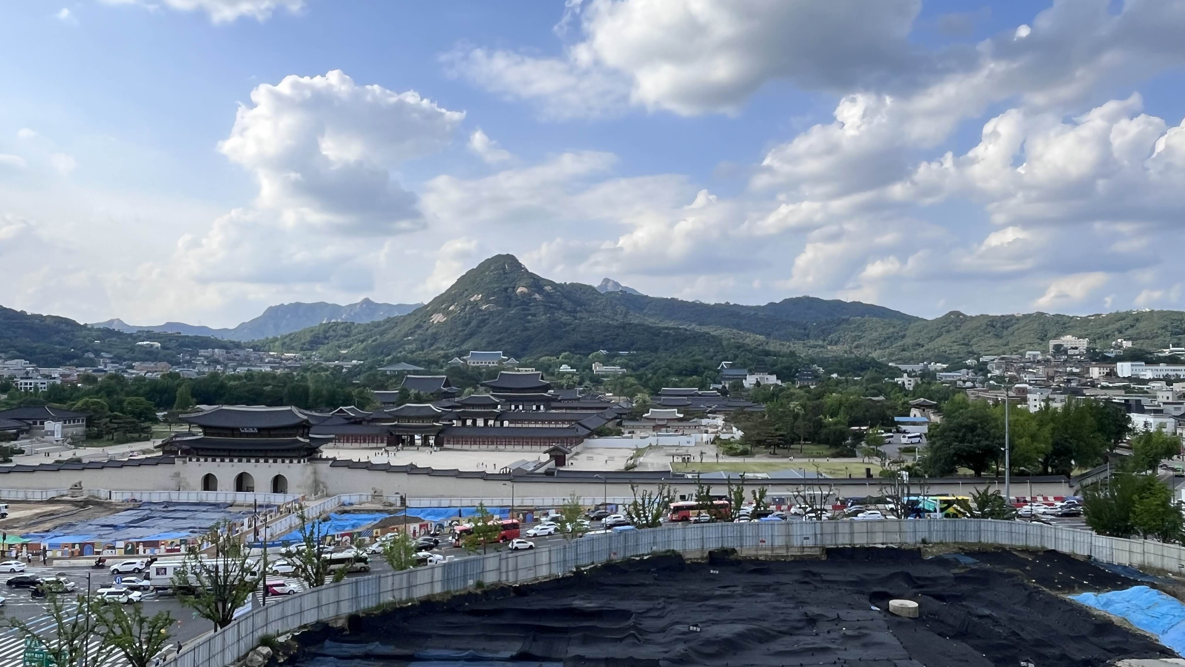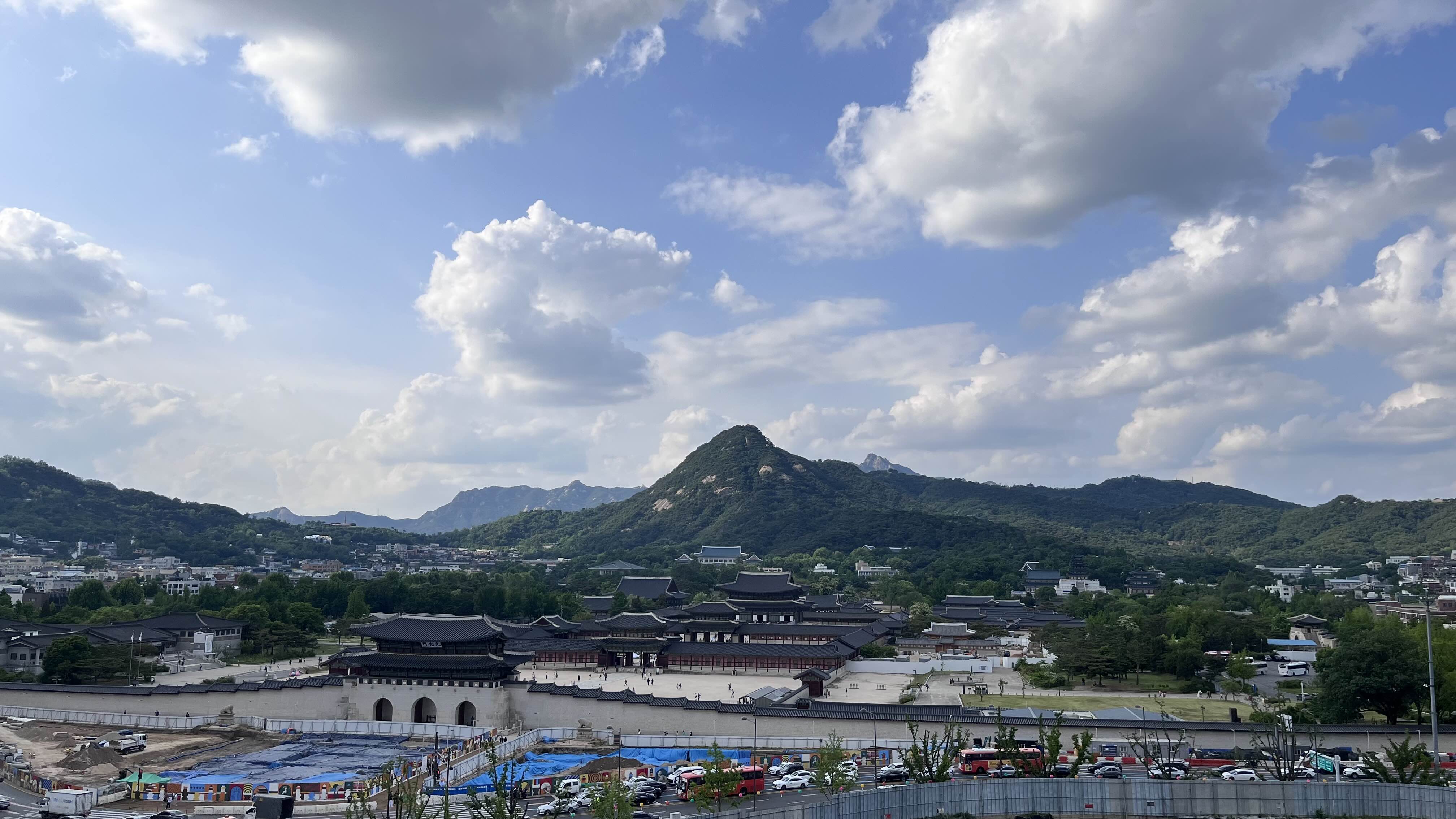 바로 대한민국역사박물관 8층 옥상인데요. 아래 사진처럼 광화문과 경복궁, 그리고 청와대 본관까지 한눈에 구경할 수 있어 좋습니다. 관광지를 관람할 때 안 쪽에서 구경하는 것도 좋지만, 지금처럼 멀리서 관광지 전경을 한눈에 보는 것도 매우 추천할만합니다.