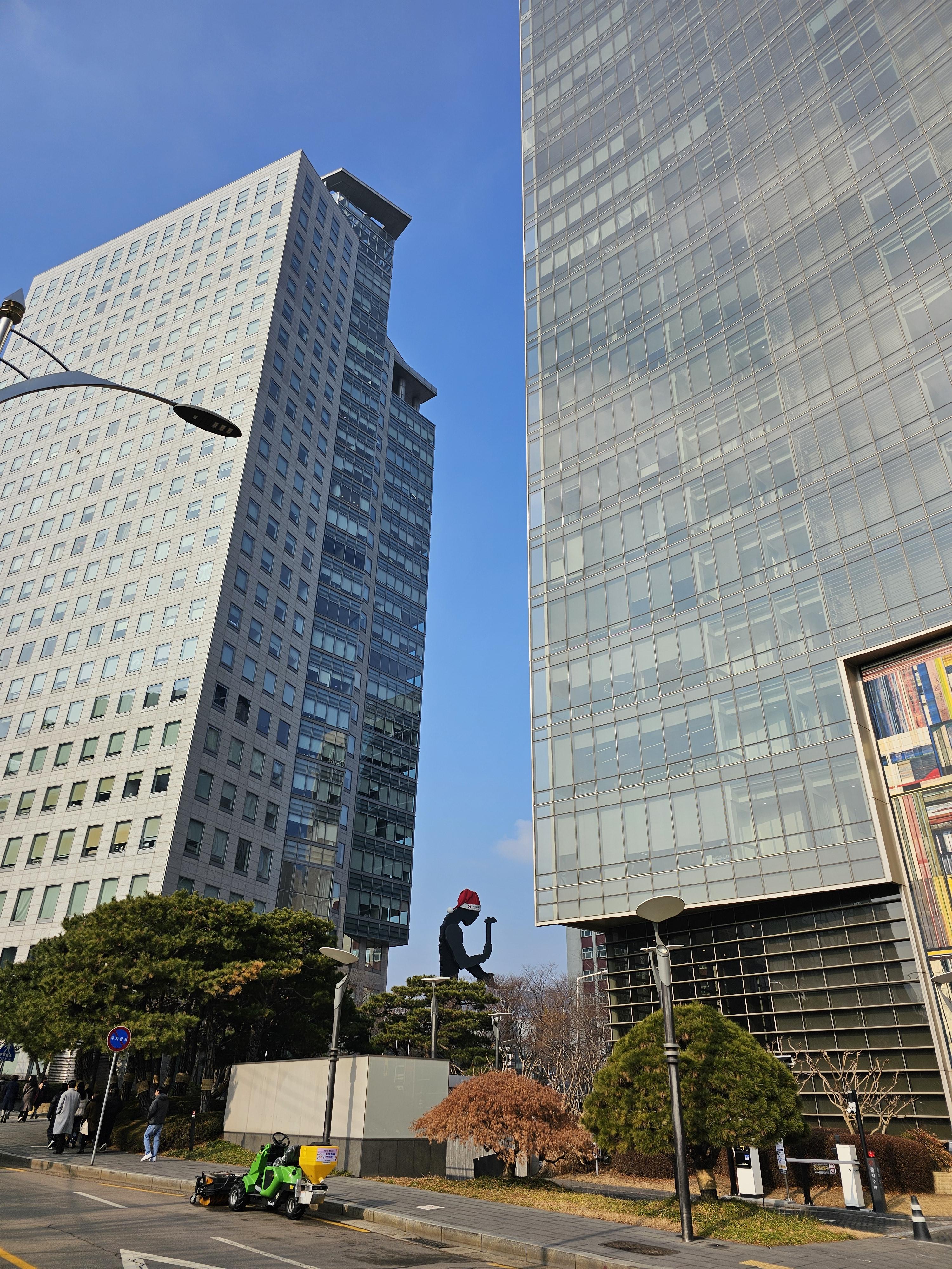 지난주 이쪽으로 점심 먹으러 가는 길에 모처럼 사진을 담았습니다. 맨 아래에 제가 예전에 만들어 둔 해머링맨 소개 유튜브 영상 링크와 영문 스크립트를 첨부했으니 참고하시면 좋겠습니다. 해머링맨 같은 공공전시물은 해당 지역의 랜드마크도 되고, 관광객 유입효과에도 도움이 될 뿐만 아니라, 삭막한 도심 한가운데에서 찾아볼 수 있는 힐링과 여유의 공간을 제공해 주고 있습니다.