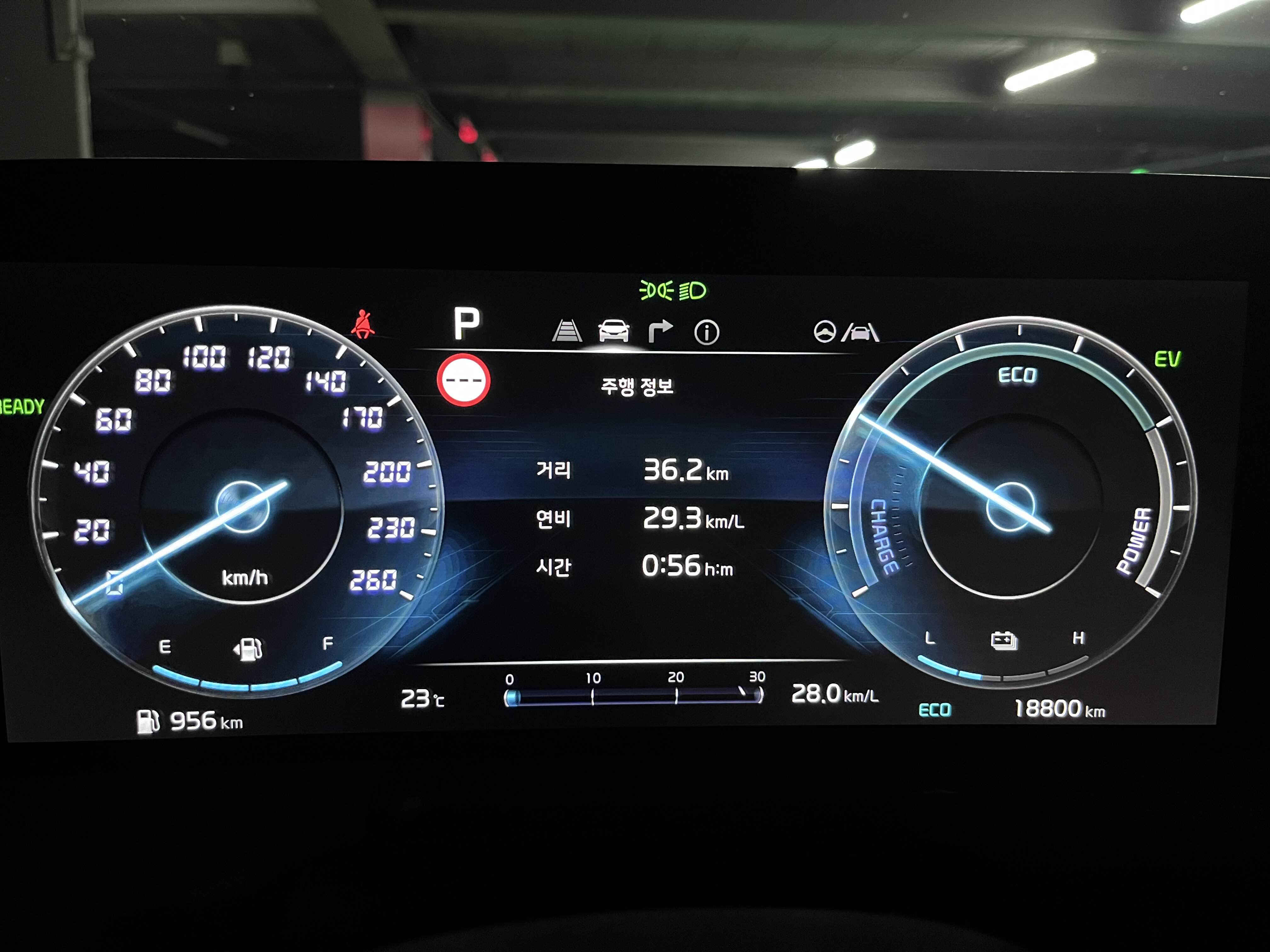 지난주 출근길 신호대기 중에 자동차 계기판을 만지다가 우연히 차량 출고 후 총 이동 거리, 연비, 주행 시간이 나타나는 메뉴를 발견하게 되었습니다. 작년 5월 24일에 1,600cc 하이브리드 차량을