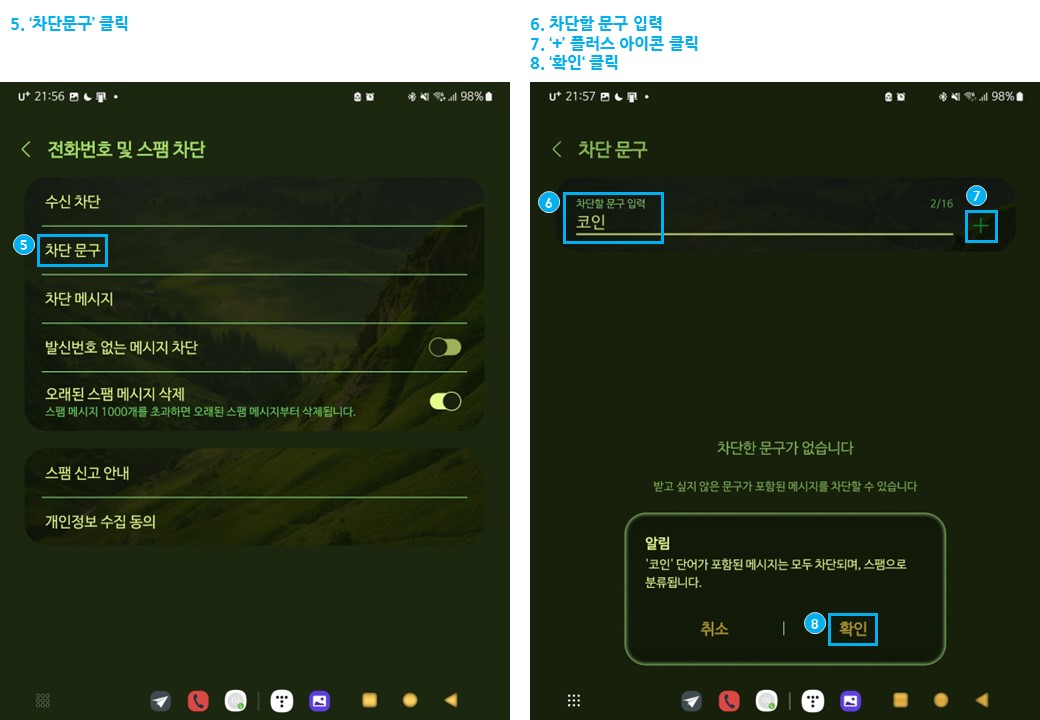 6. 차단할 문구 입력