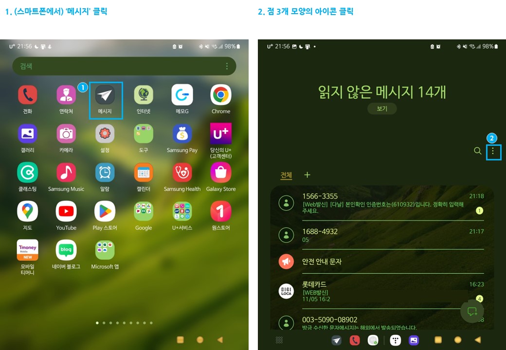 1. (스마트폰에서) '메시지' 클릭