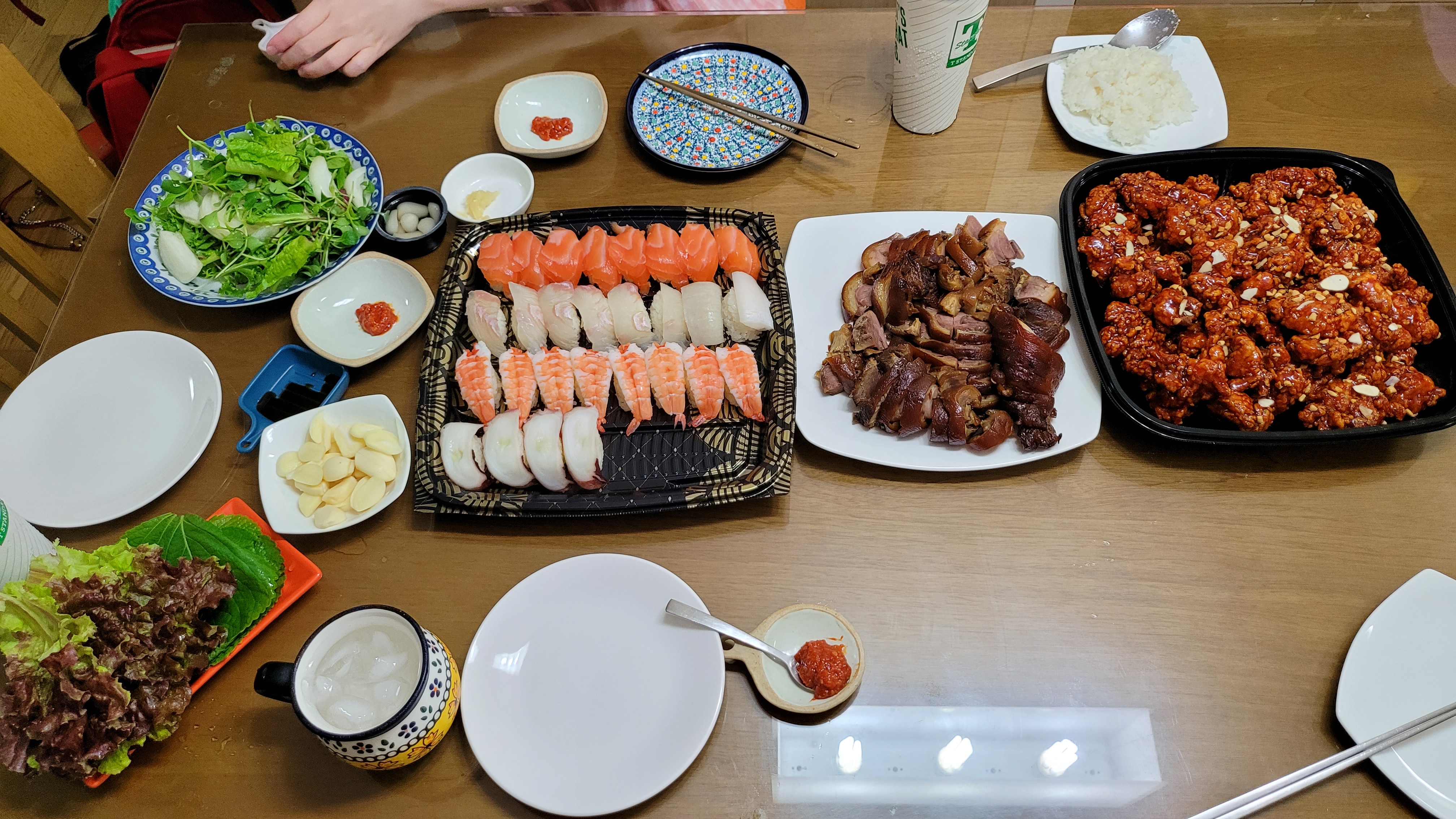 이 날은 족발과 닭강정에 초밥, 이렇게 3세트를 구매해 왔습니다.