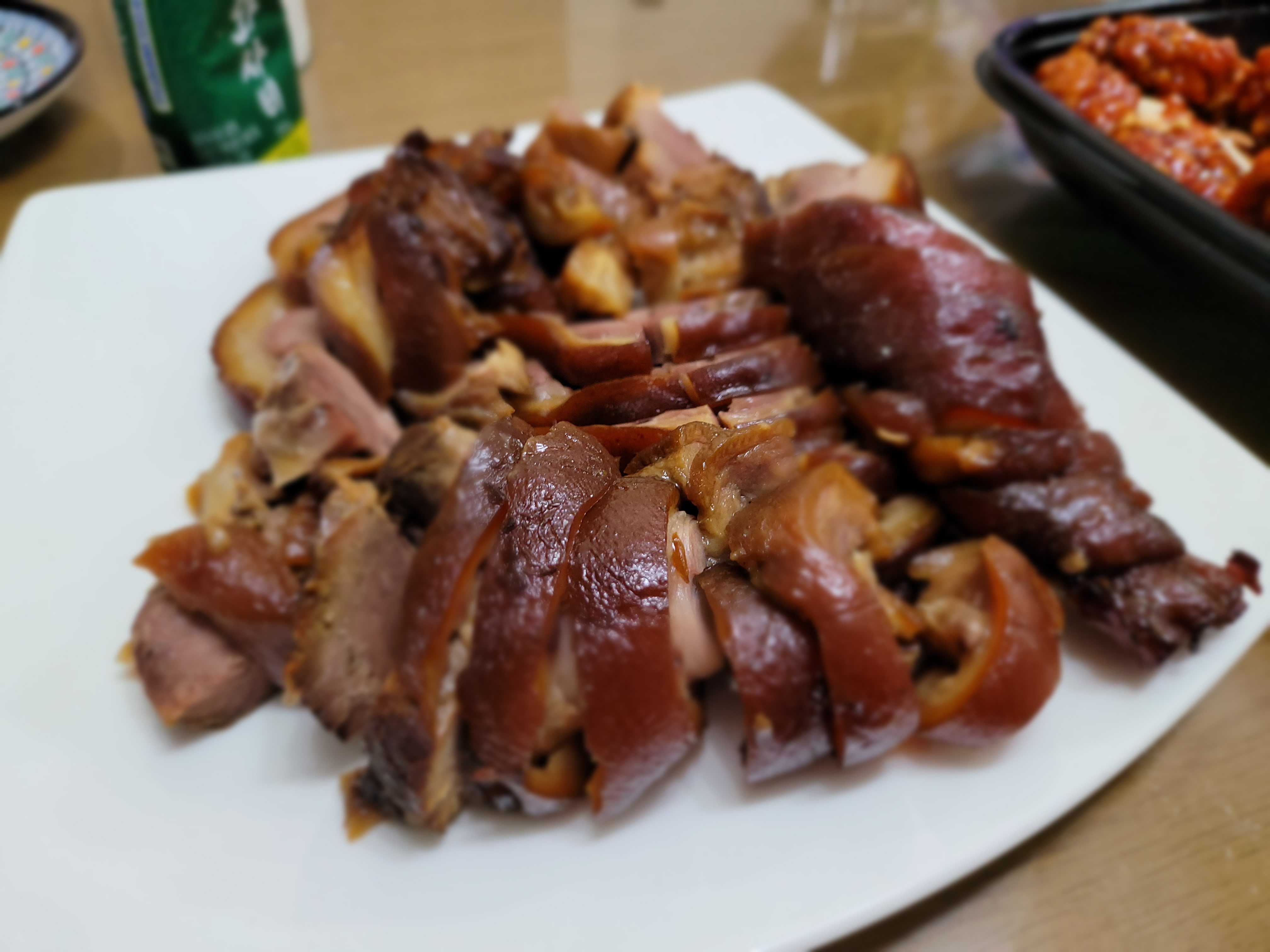 트레이더스에서 꼭 사야할 잇템들; 족발, 강정류 그리고 훈제 삼겹살입니다.