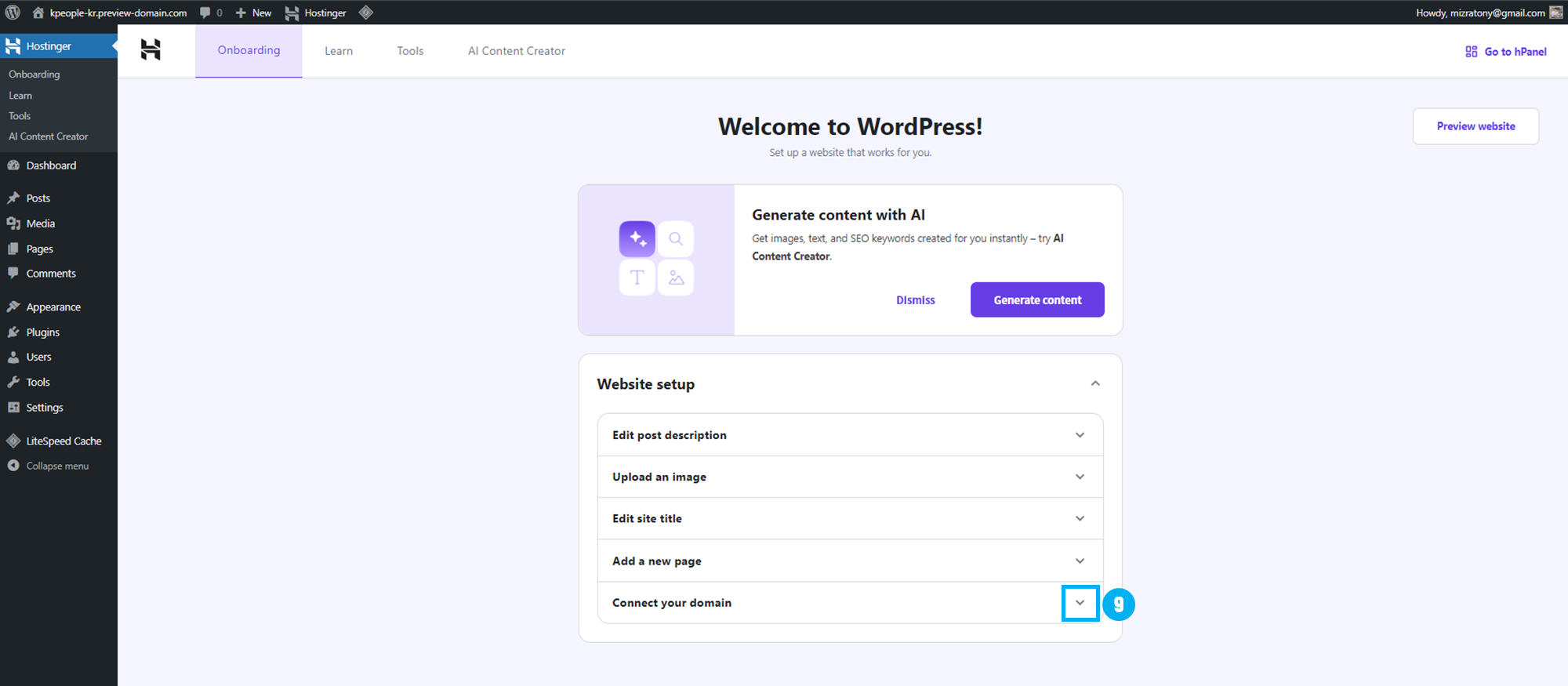⑨ Connect your domain에서 펼침 버튼 클릭 후 네임서버 확인