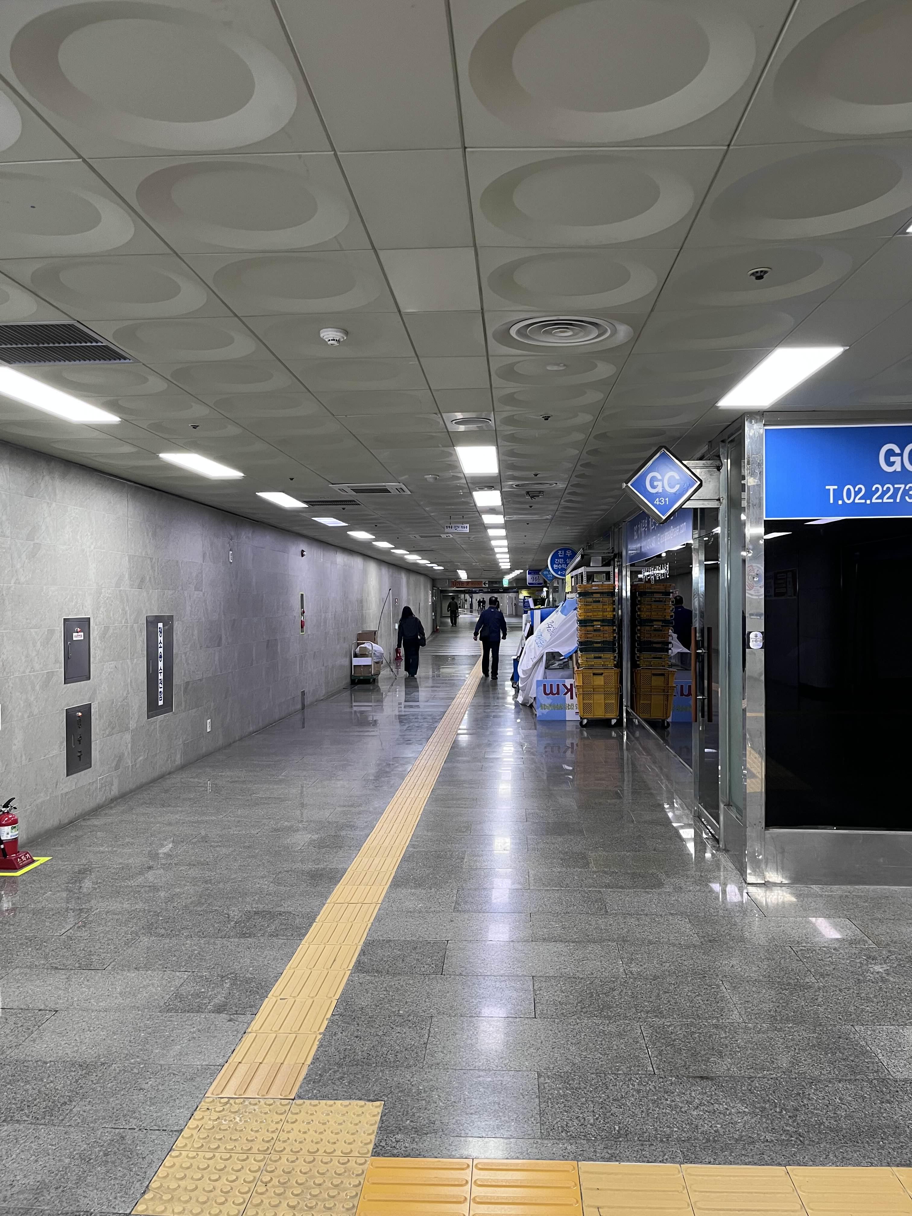 아래 사진 보시면 5/6번 출구와 7/8번 출구 사이에 직진하는 길이 있는데요.(서울보청기라고 쓰여 있는 매장 옆)