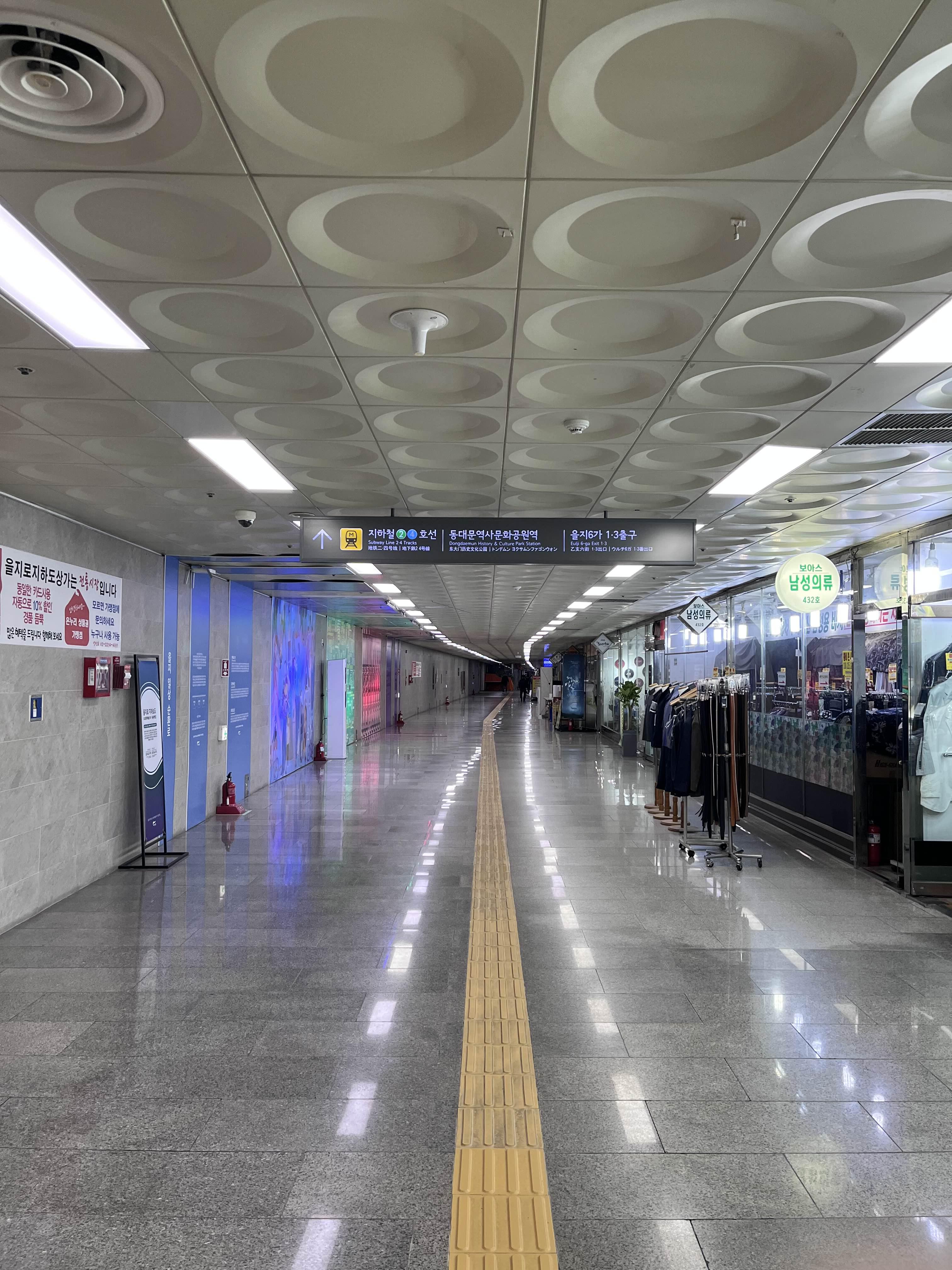 왼쪽으로 가면, 동대문역사문화공원역이고 오른쪽으로 가면 을지로4가역이다.