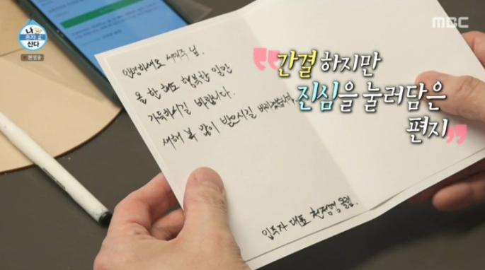 본인이 거주하고 있는 빌라(18세대 정도)의 입주자 대표라며 시설 관리하는 모습도 보여주고, 경비원분과도 대화하는 모습이 나왔는데 셀럽의 일반인 생활을 엿볼 수 있어 좋았습니다. 그리고 손글씨를 예쁘게 정말 잘 쓰시더라고요.