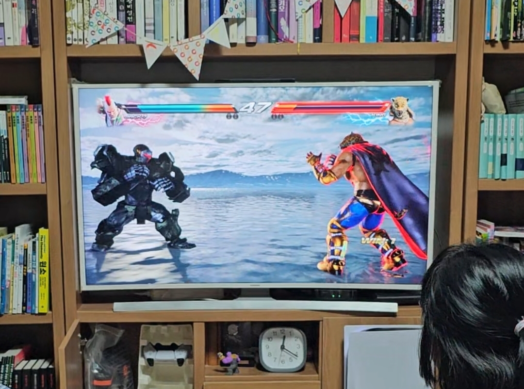매일 공부하는 것도 힘든데 이렇게 집에서 가족들끼리 철권 같은 비디오 게임을 하면 스트레스도 풀리고 좋지 않을까 해서 플스를 구매하게 되었습니다. 집에서 TV를 잘 보는 편이 아니라서 큰 TV가 없는데, 철권 하면서 65인치 같은 큰 TV에 관심이 가네요^^;;; 다음엔 우선 빔프로젝트에 플스를 연결해 철권을 해 볼 예정입니다.