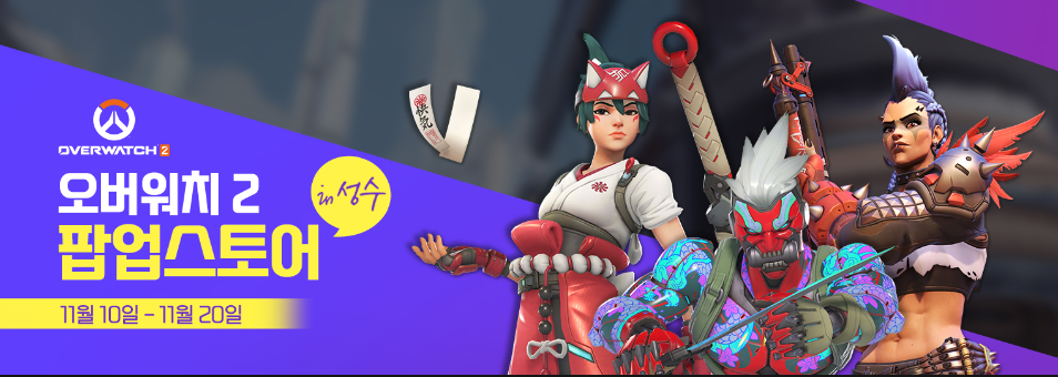 여기는 팝업스토어를 위해 공간을 대여하고 있는 곳인데요. 9~10월에는 CJ제일제당에서 진행하는 '성수동 제1의 맛집, 우주도넛' 팝업스토어가 진행되었고, 11/10(목)~11/20(일), 열흘간의 일정으로 블리자드에서 진행하는 오버워치 2 팝업이 진행 중입니다.