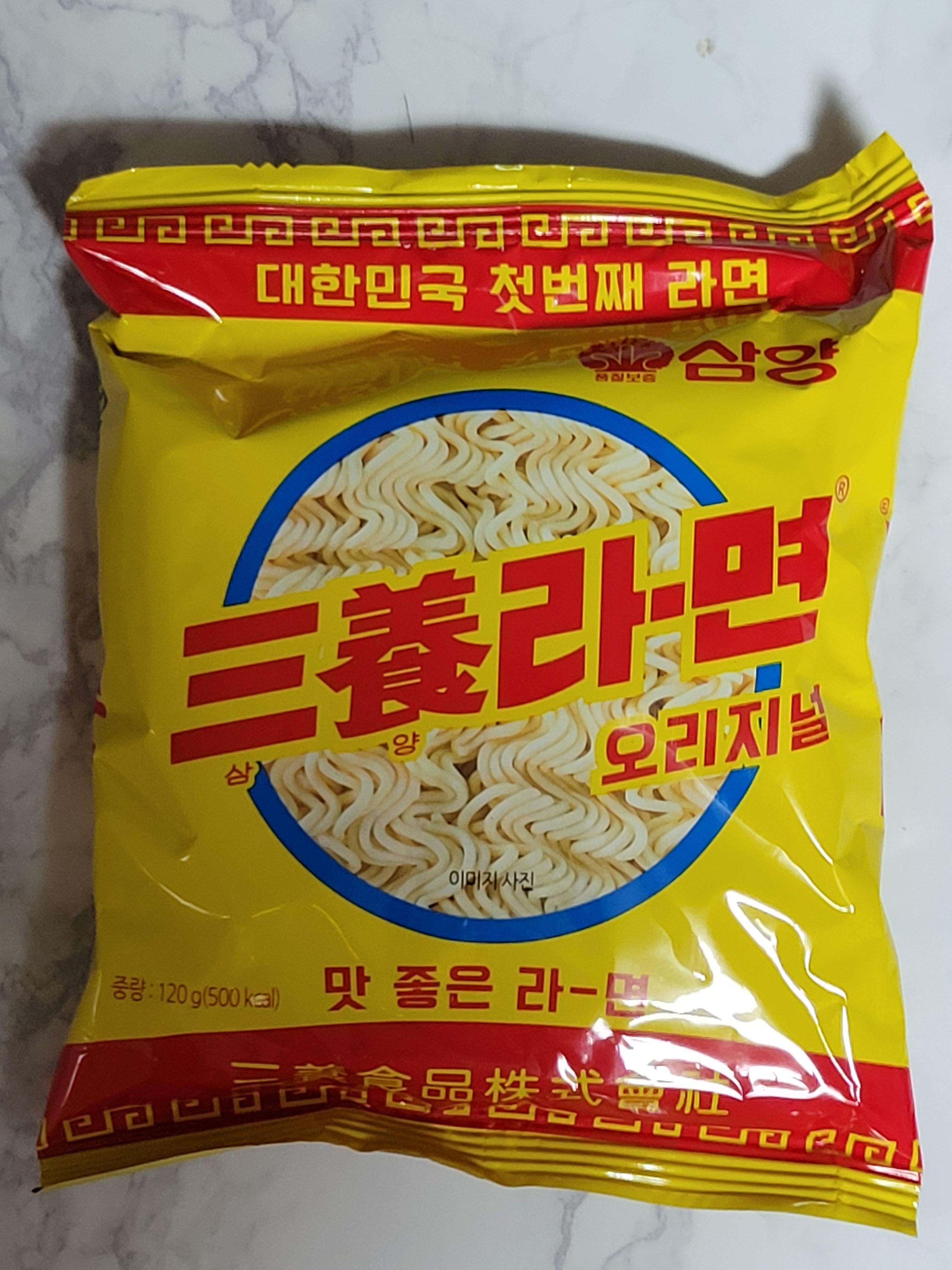 무슨 라면으로 끓였나 물어보니까 삼양라면 오리지널이라며 새 봉지를 꺼내 주는데 40대 후반인 저로서도 처음 보는 디자인이었습니다. 최초의 삼양라면 봉지를 레트로 감성으로 재해석한 건데 아주 어릴 적 라면봉지가 어떤 건지 전혀 몰랐을 때, 어쩌면 제 세대에서도 본 적 없는 디자인일지도 모르겠습니다.