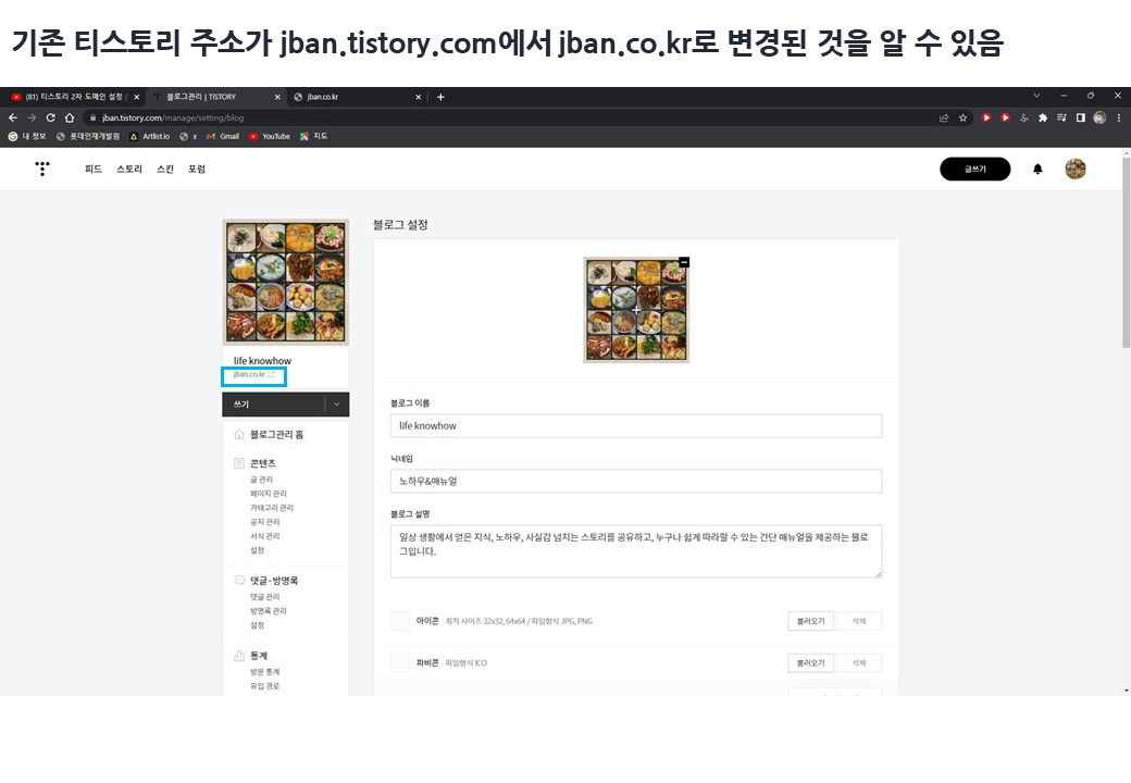 7. 티스토리로 이동. 관리 - 블로그로 들어가서 새 도메인 입력