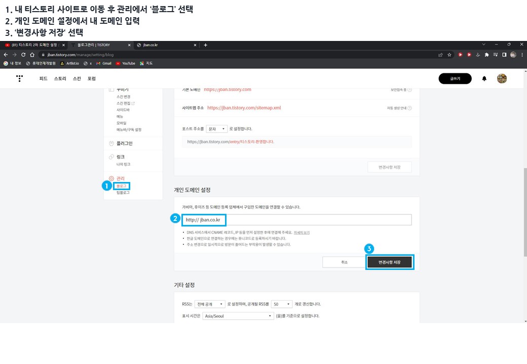 티스토리를 내가 산 도메인에 연결시키는 방법