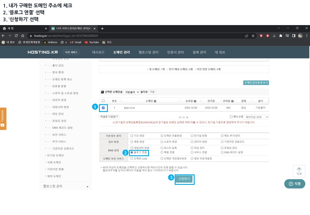 3. 내가 구매한 도메인 주소에 체크