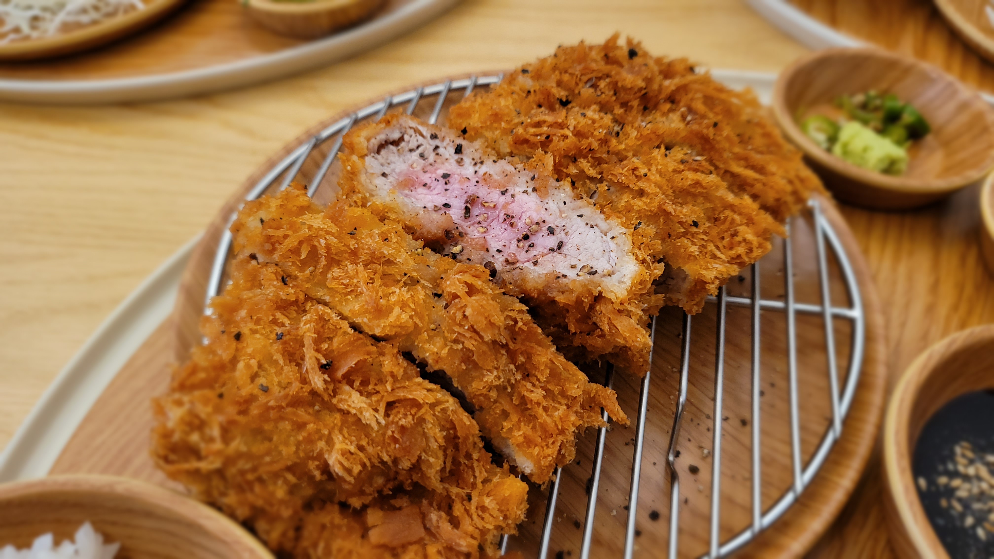 와~~ 저 두께!! 지금까지 다양한 돈가스를 먹어 봤지만, 그중에서도 여기 '돈갓'의 돈가스의 두께가 가장 두꺼웠습니다.