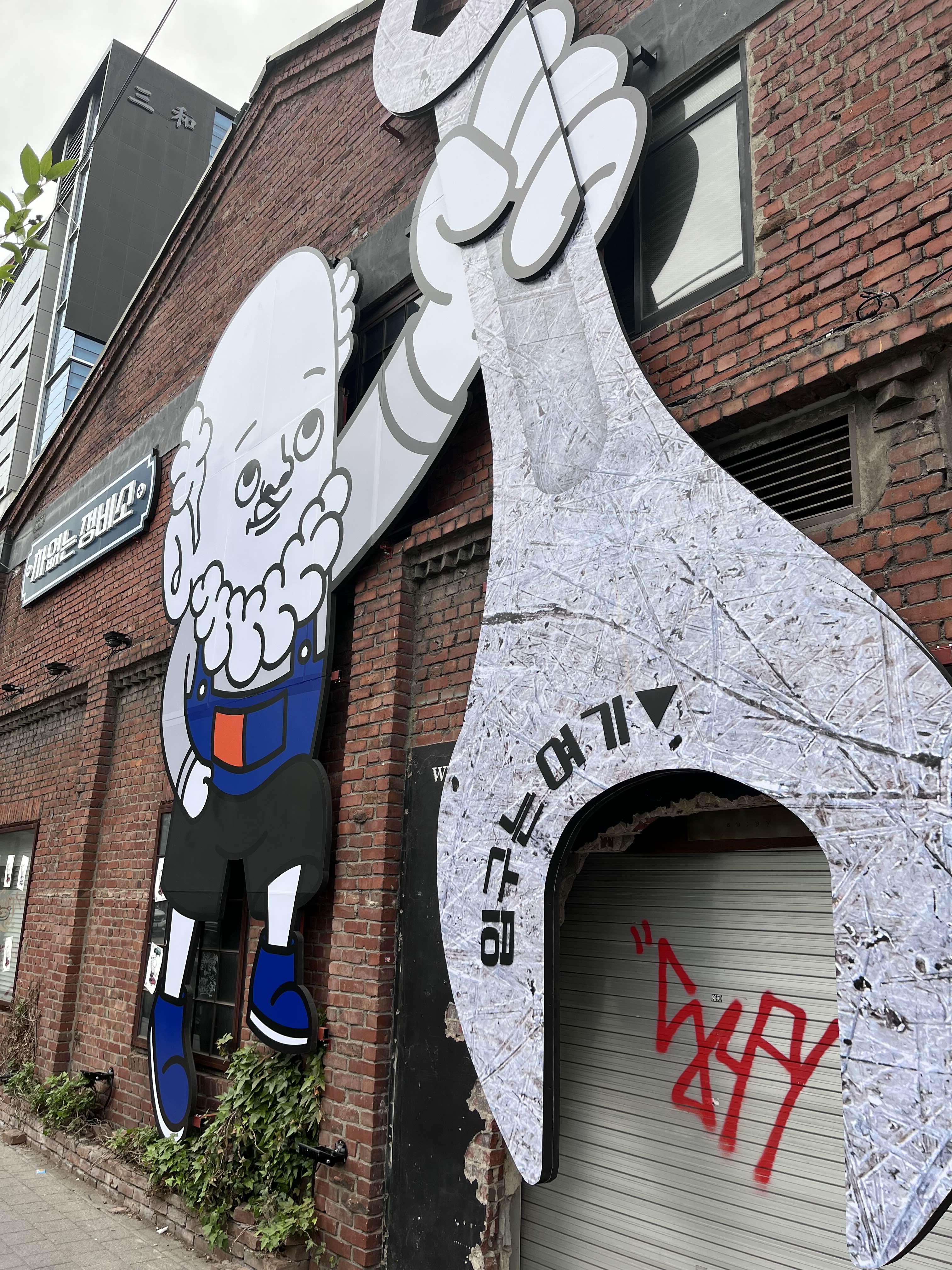 팝업 스토어 대문 안쪽 모습입니다. '르르르'의 눈 부위에 '르르르'라고 쓰여있네요.