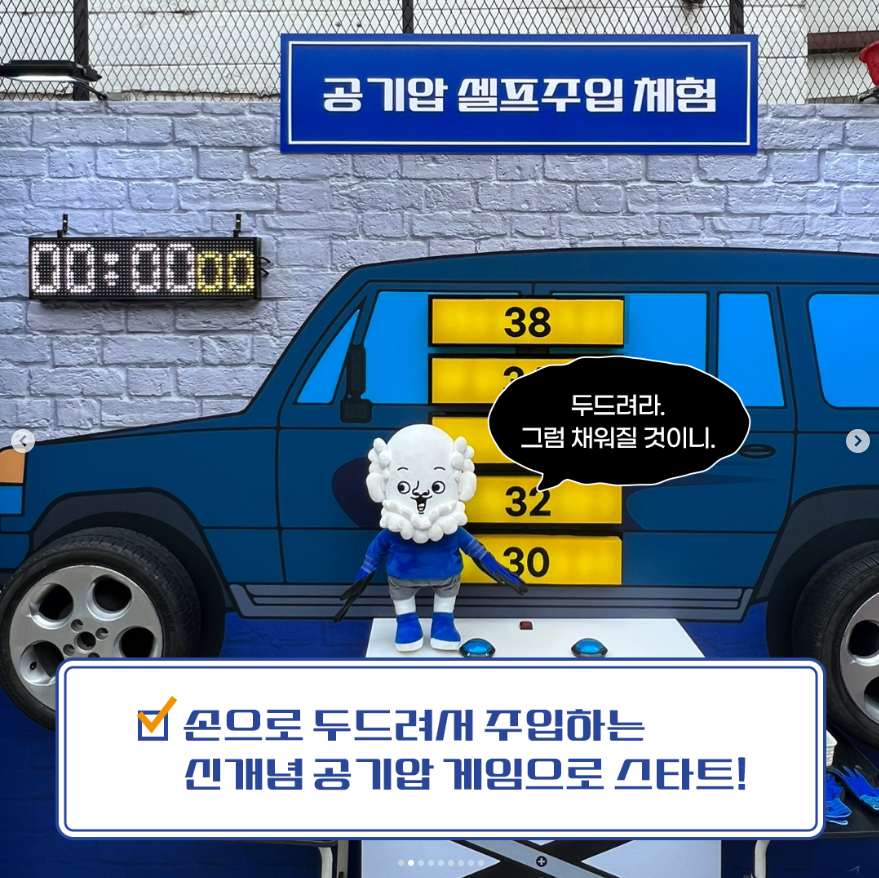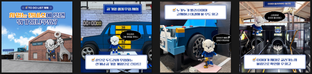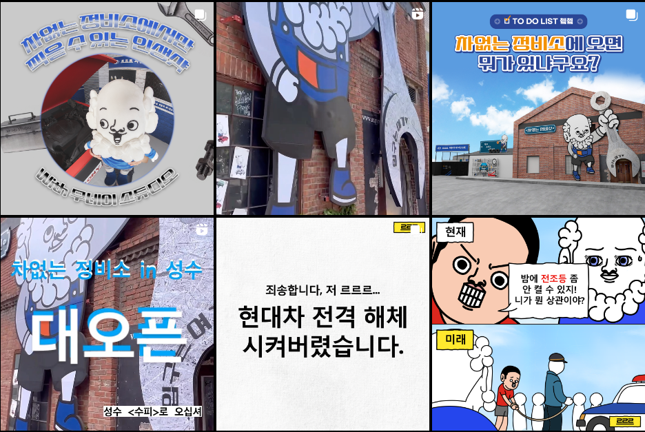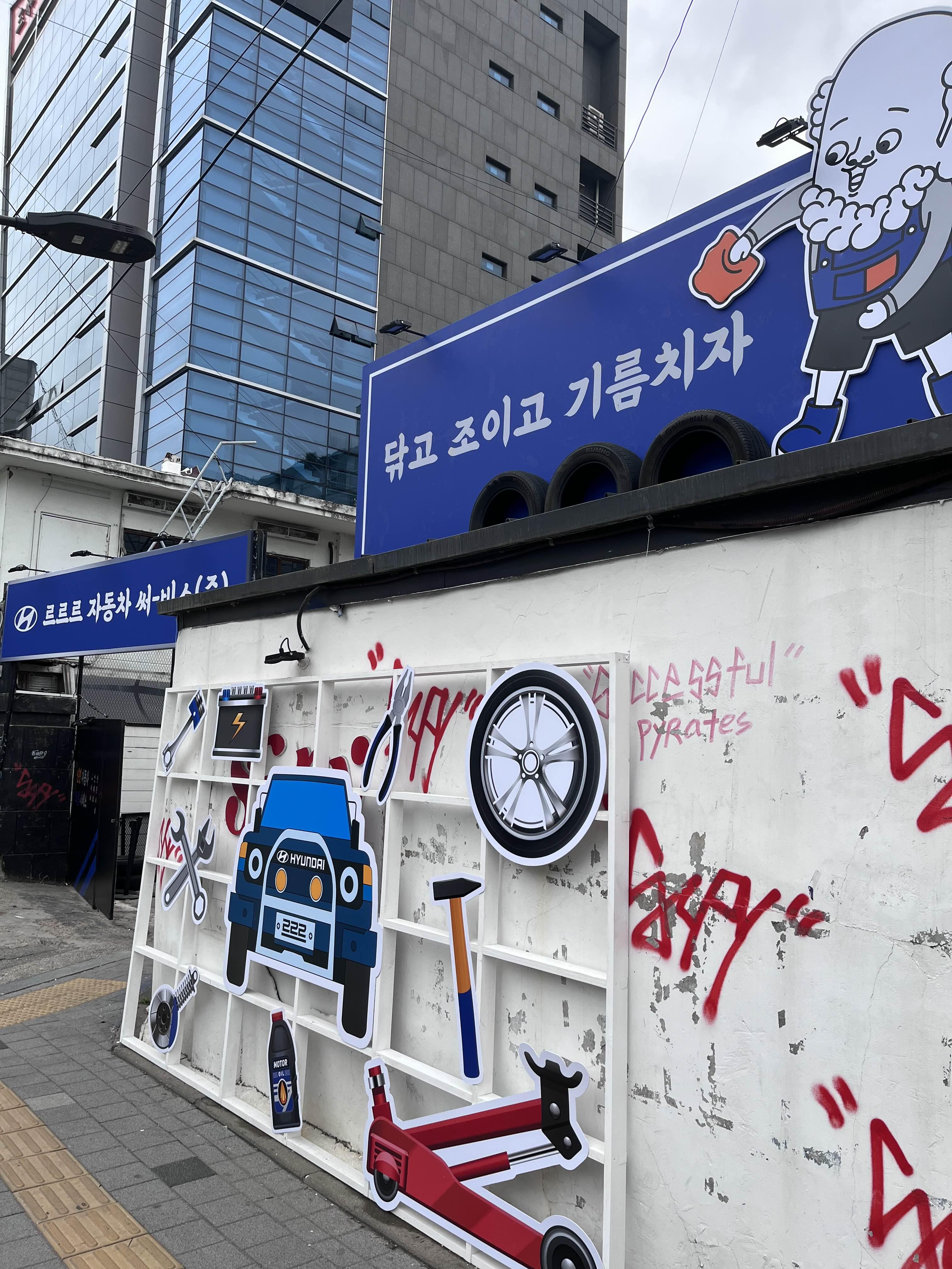 현대 자동차에서 팝업을 진행하기 때문에 최신 전기차라도 있을 줄 알았는데, 정말로 차가 한 대도 없는 차 없는 정비소였습니다. 차를 가지고 있지 않는 사람들을 타겟으로 하기 때문입니다. 자동차 관련 게임 등을 진행하며 '차'에 대한 관심을 심어주기 위한 마케팅 전략이 있지 않을까요?^^