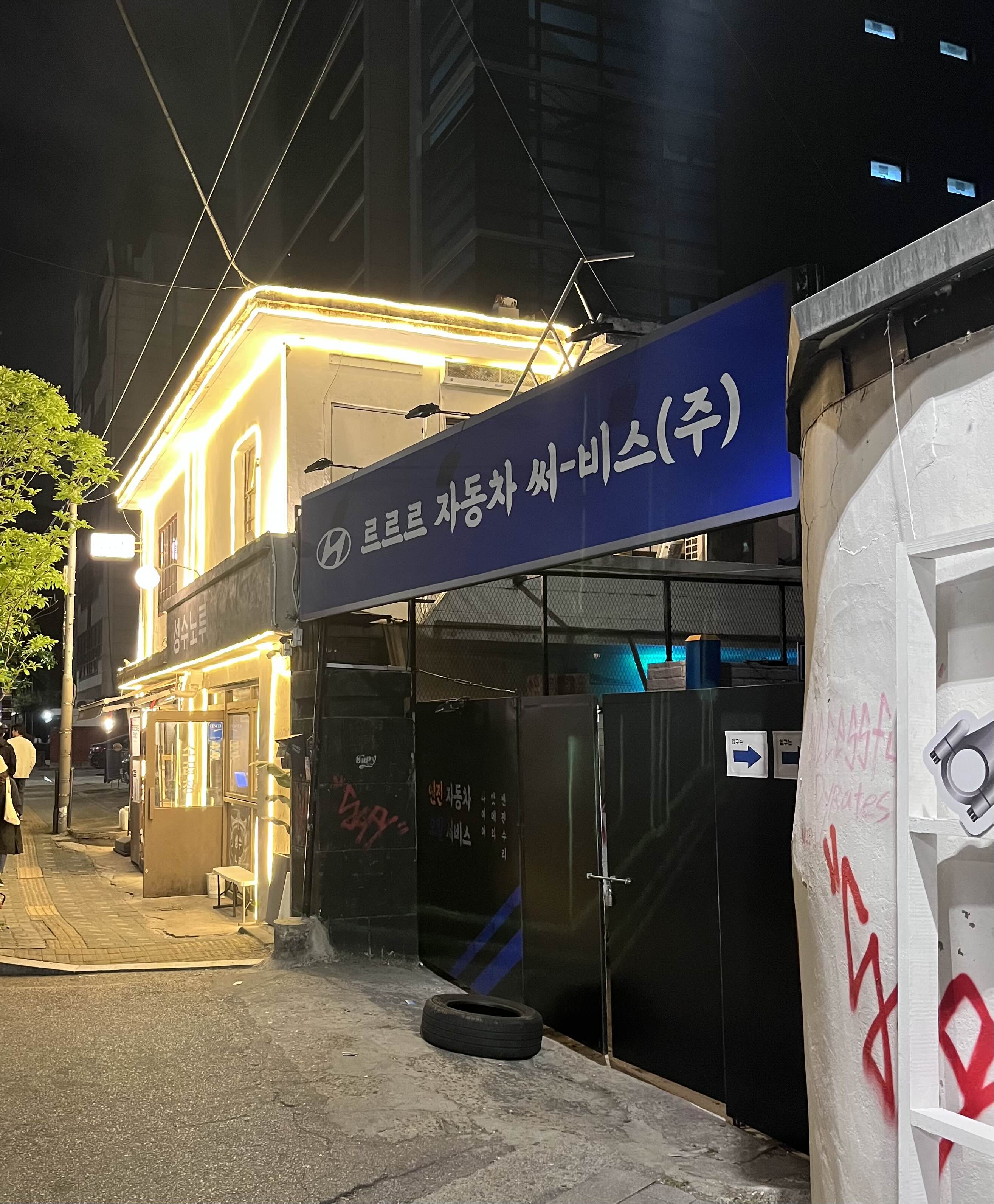 지난주 화요일 야근 후 퇴근길에 촬영한 모습입니다. 닫혀 있는 대문을 보면서 고된 업무를 마쳤을 르르르 정비소의 직원들이 떠올랐습니다. 팝업 직원들이 아닌, 예전 초창기 현대자동차의 정주영 회장님과 젊은 직원들의 모습 말입니다.