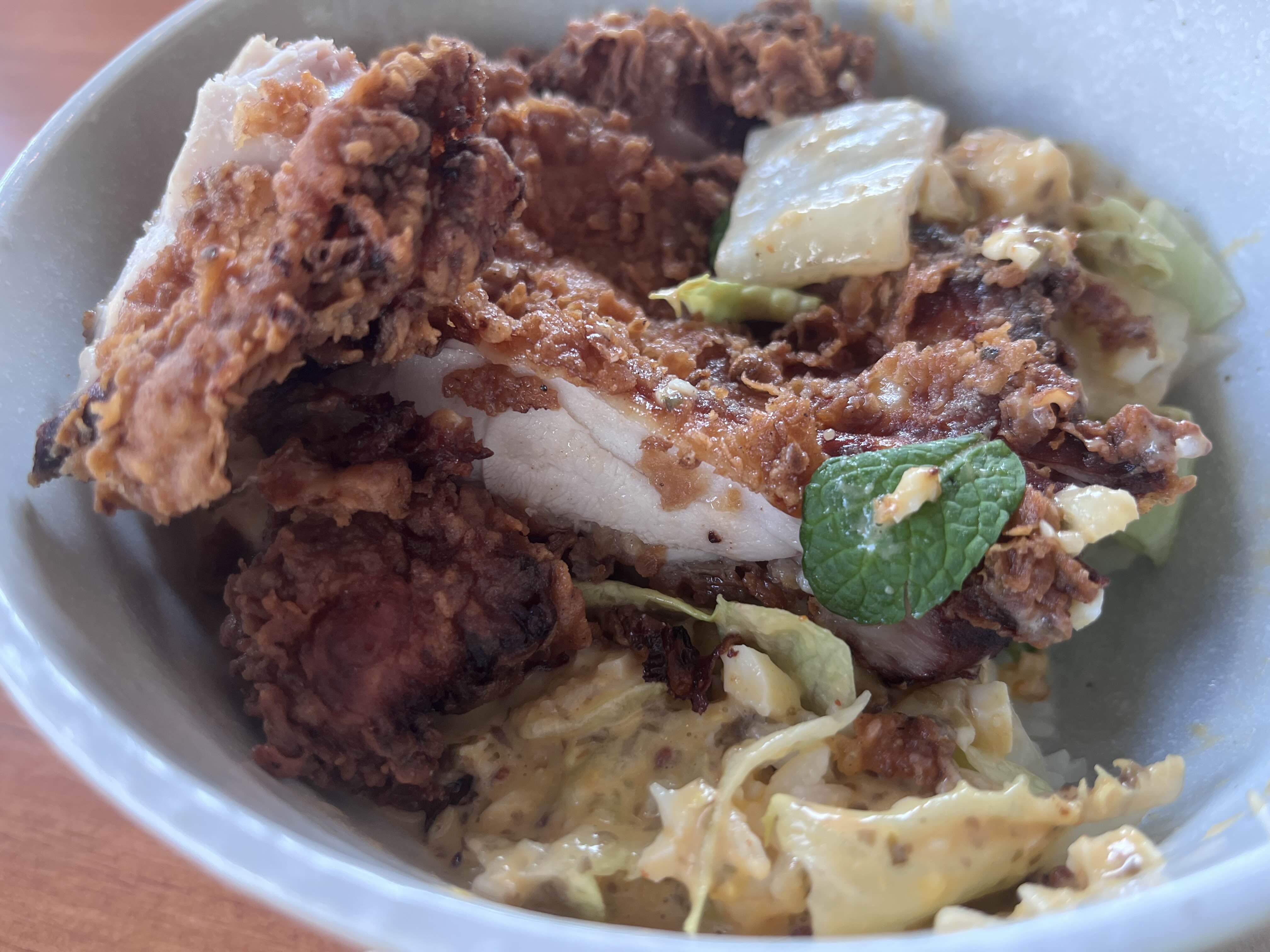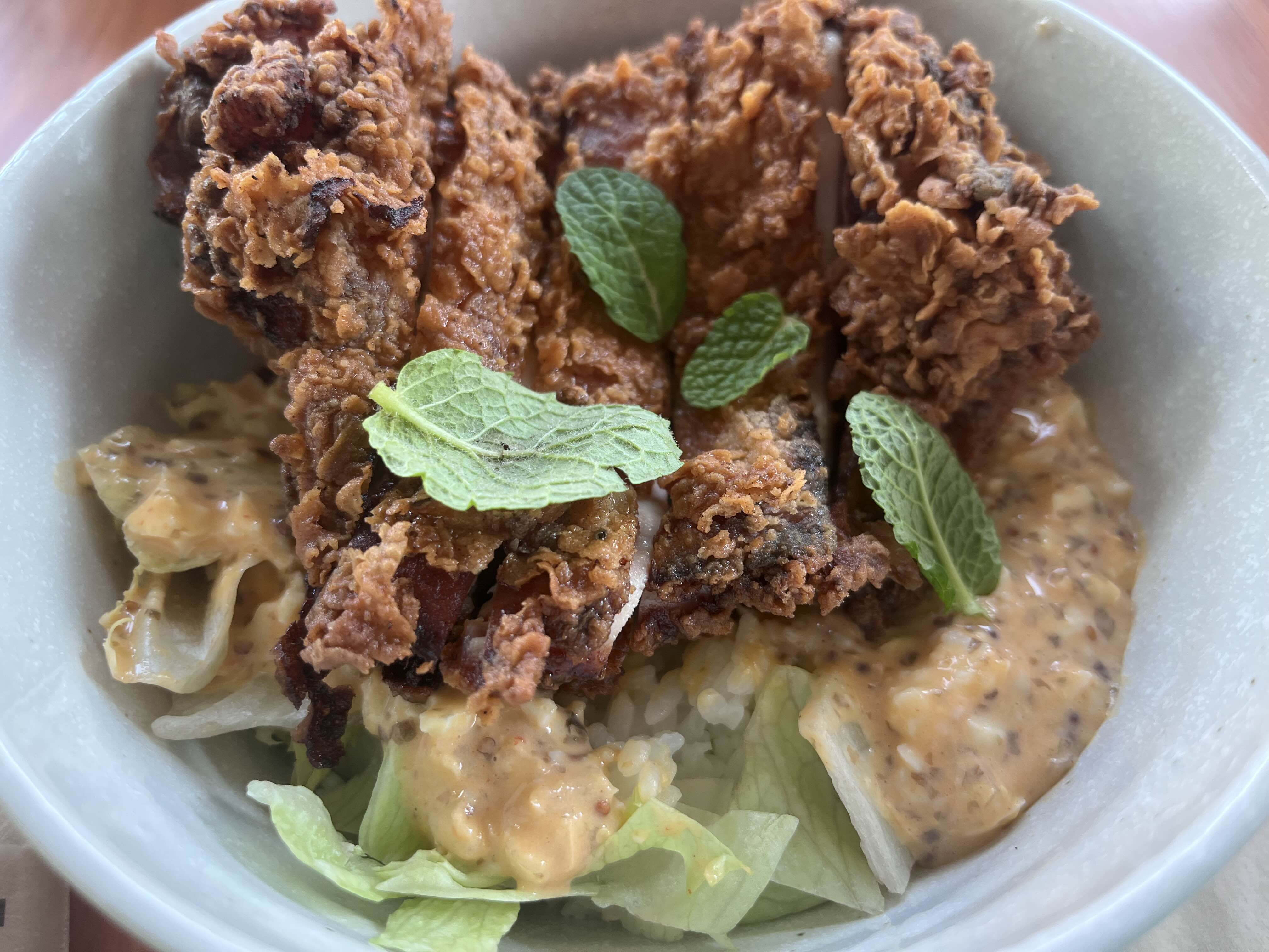 주문한 옹박 치킨 덮밥이 나왔습니다.