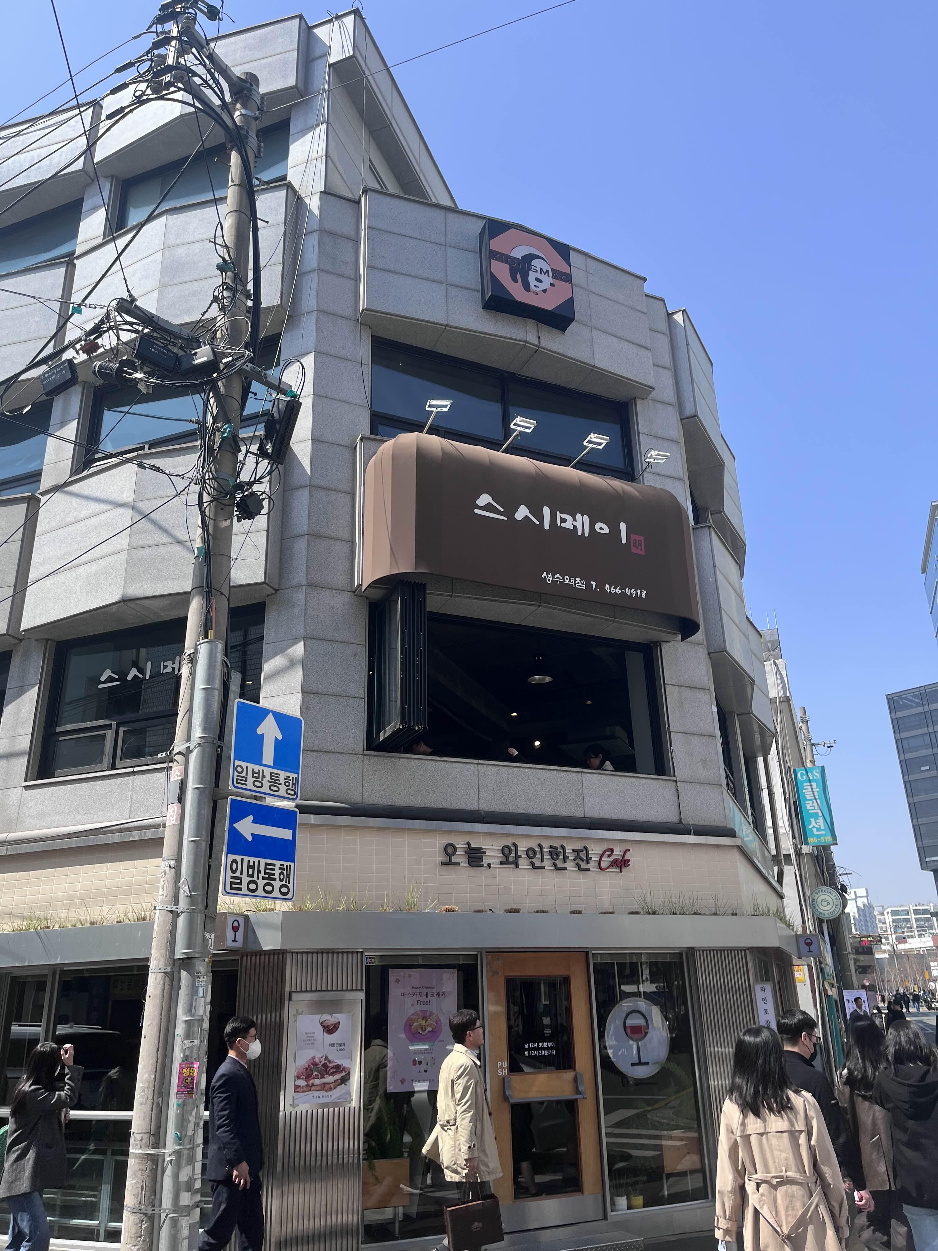 성수동 유명 맛집들이 지하철 2호선 성수역 4분 출구에 주로 모여 있는데요. 시옹마오는 먹자골목 한 복판에 위치하고 있어 찾기 쉬운 편입니다. 다만 3층이기도 하고 간판이 너무 작게 걸려 있어 지도를 참고하시면 좋을 것 같습니다.