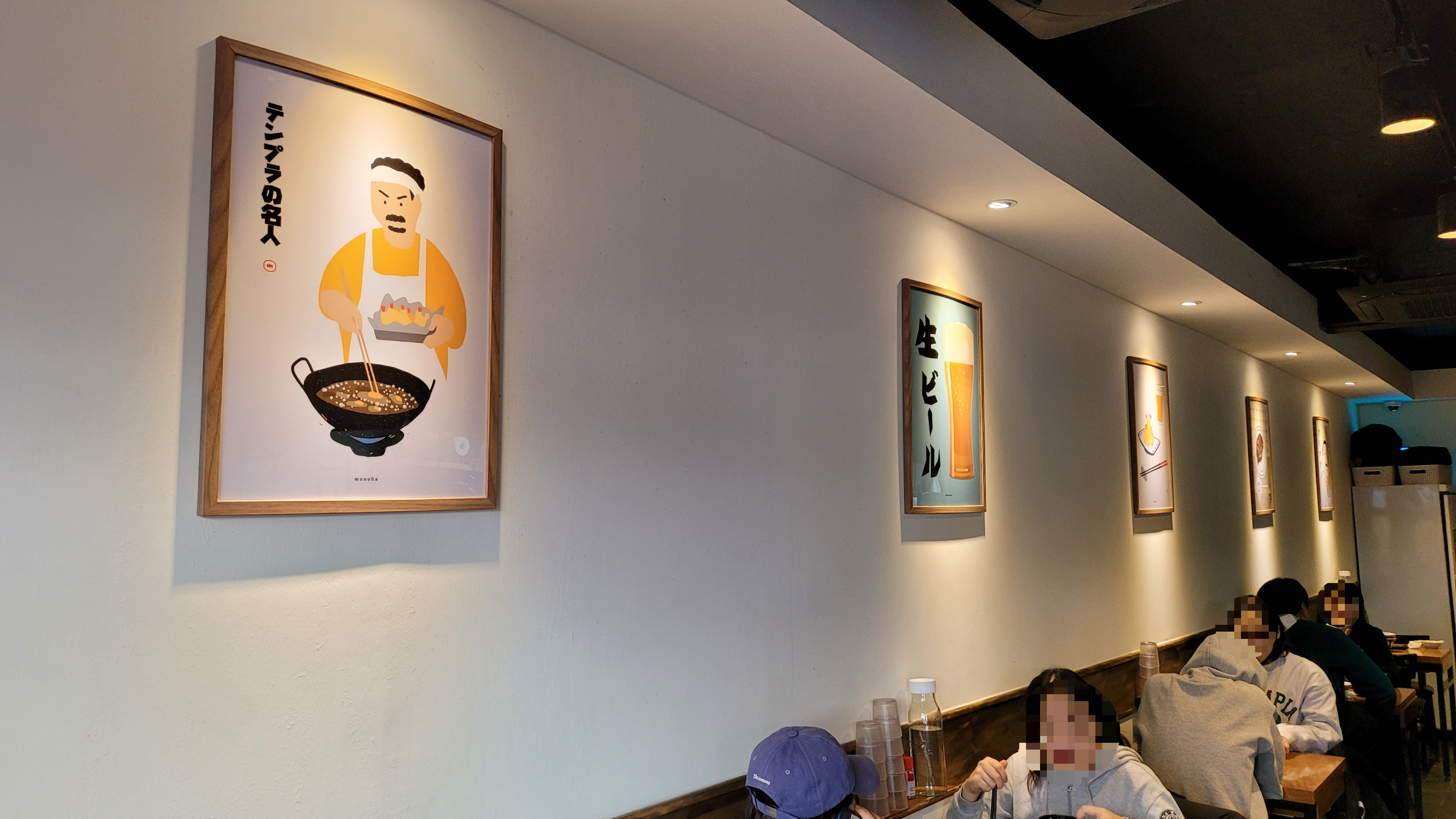 식당 내부로 들어가서 왼쪽을 보면 일본식 느낌이 나는 조리 장면, 생맥주, 음식 액자들이 걸려 있습니다. 전반적으로 인테리어가 깔끔합니다. 오픈한 지 얼마 되지 않은 그런 느낌이 납니다.