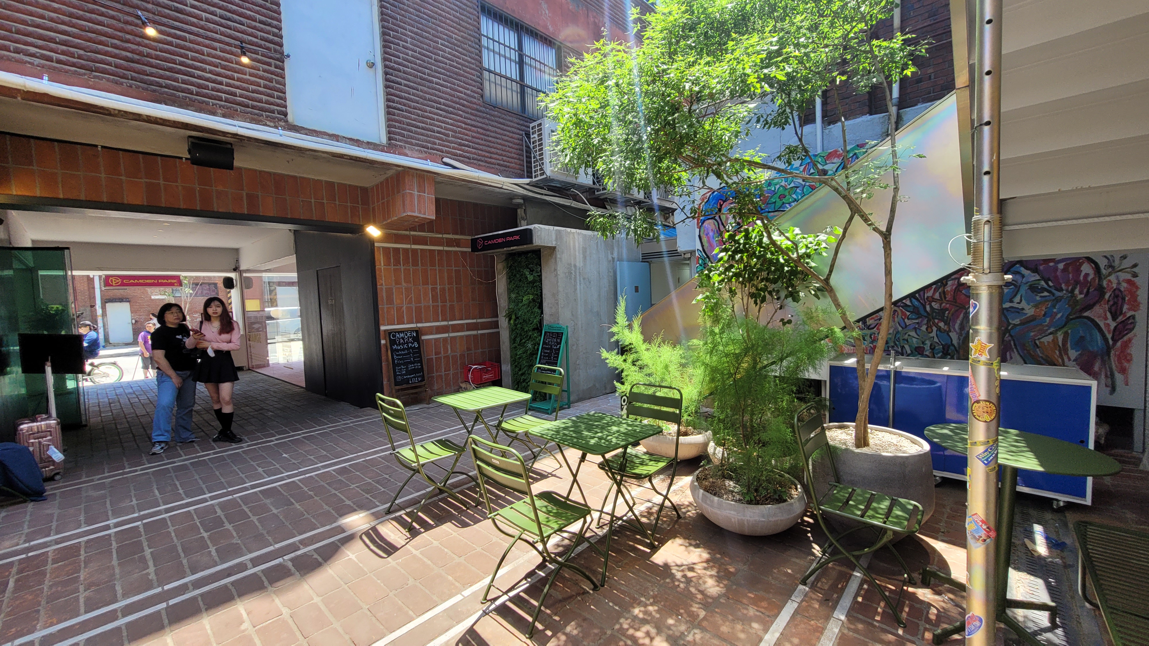 1층 앞마당에는 이렇게 녹색의 테이블과 의자가 놓여있는데, 초록의 나뭇잎과 앙상블을 이루고 있습니다.