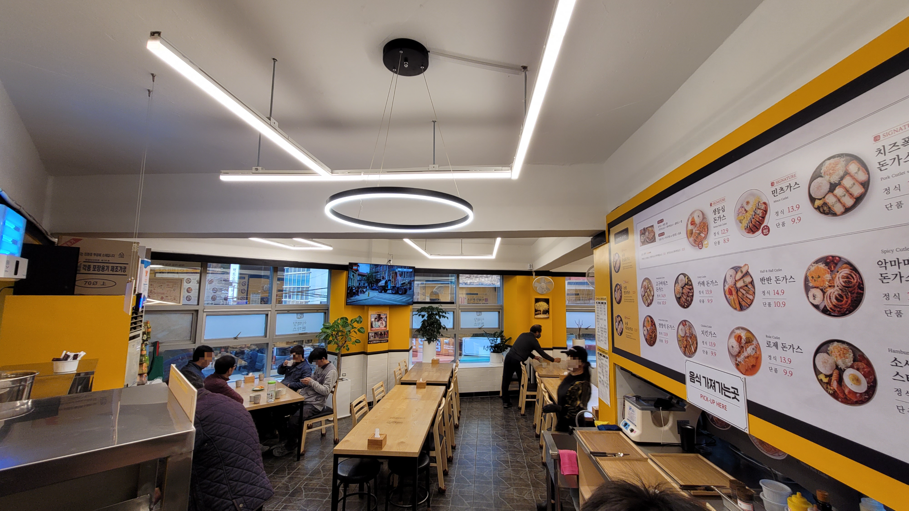 오늘 11:45분쯤 방문했는데 손님이 많지 않았습니다. 키오스크가 1대밖에 없어서 웨이팅이 있는 날엔 주문이 밀리지 않을까 라는 생각이 들었는데요. 오늘은 비가 와서 그런지 돈가스 집은 다소 한적했습니다. 비도 오고 그래서 다들 국물 음식 찾아가셨나요🤷🏼