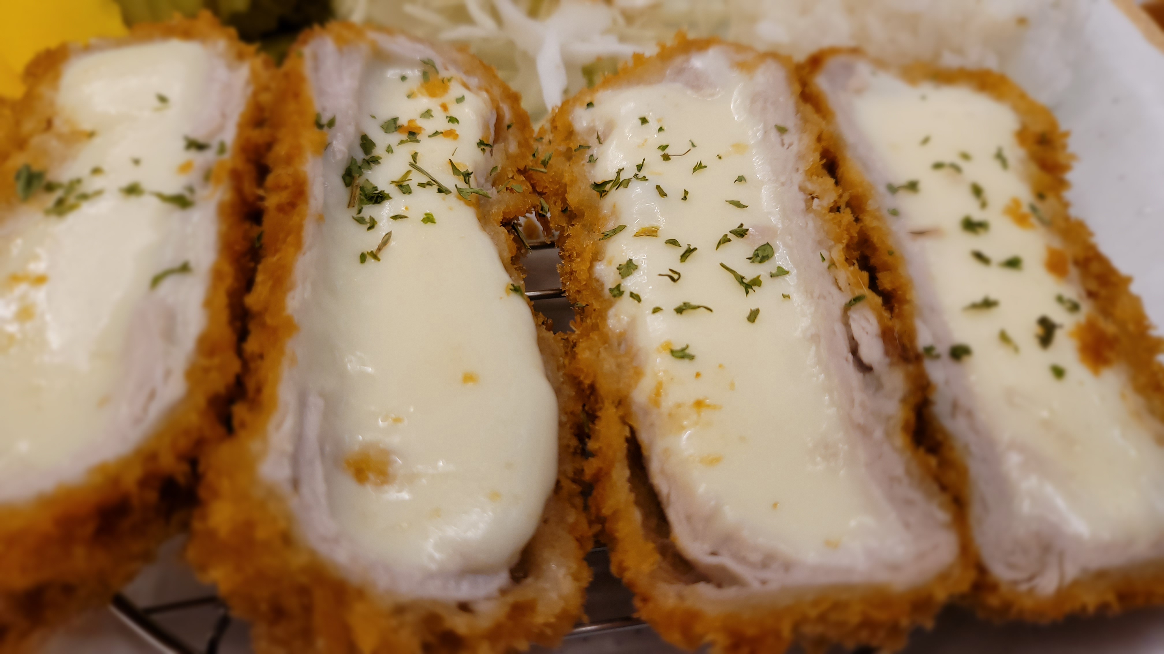 저는 치즈 폭탄 돈가스를 주문했는데요. 갓 나왔을 때의 향긋한 치즈향, 이 맛에 치즈 돈가스 먹는 게 아닐까요?❤️🔥