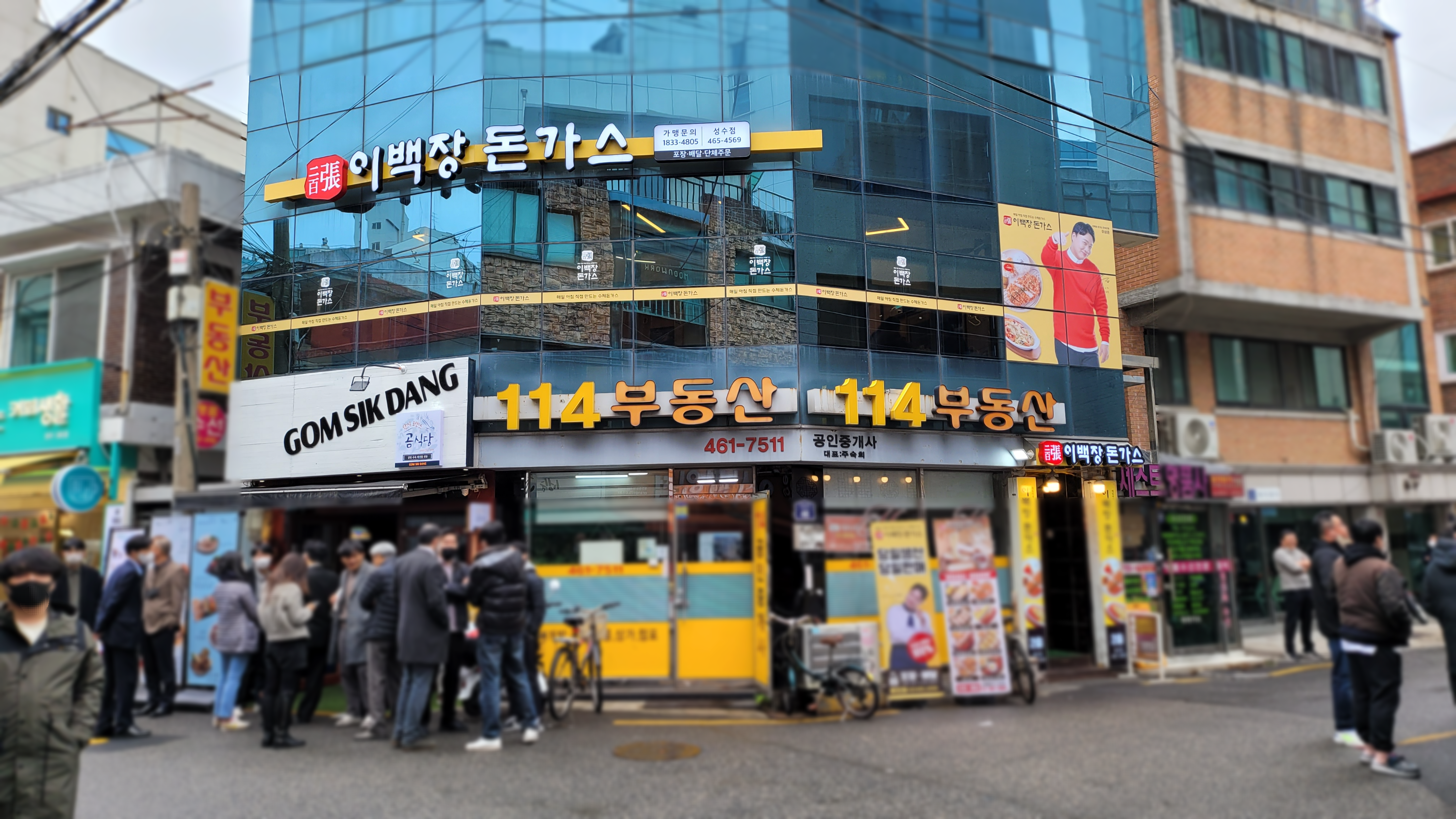오늘 점심은 비가 금방이라도 올 것 같아서 근처에서 돈가스를 먹자 이렇게 의견이 모아졌습니다. 회사 1층에 돈가스 맛집이 있긴 한데 오늘 영업을 하지 않더라고요. 그래서 돈가스 집 찾아다니다가 지난번 곰식당에 왔을 때 봐 뒀던 같은 건물 2층, 이백장 돈가스 성수점에 가보게 되었습니다. 오늘 점심시간 직전에 비가 많이 와서 그런지 곰식당 앞에는 웨이팅이 길게 서 있더라고요. 이런 날씨에는 곰탕/해물탕 이런 게 찰떡궁합이긴 하죠^^ 곰식당, 어마어마한 맛집입니다!!