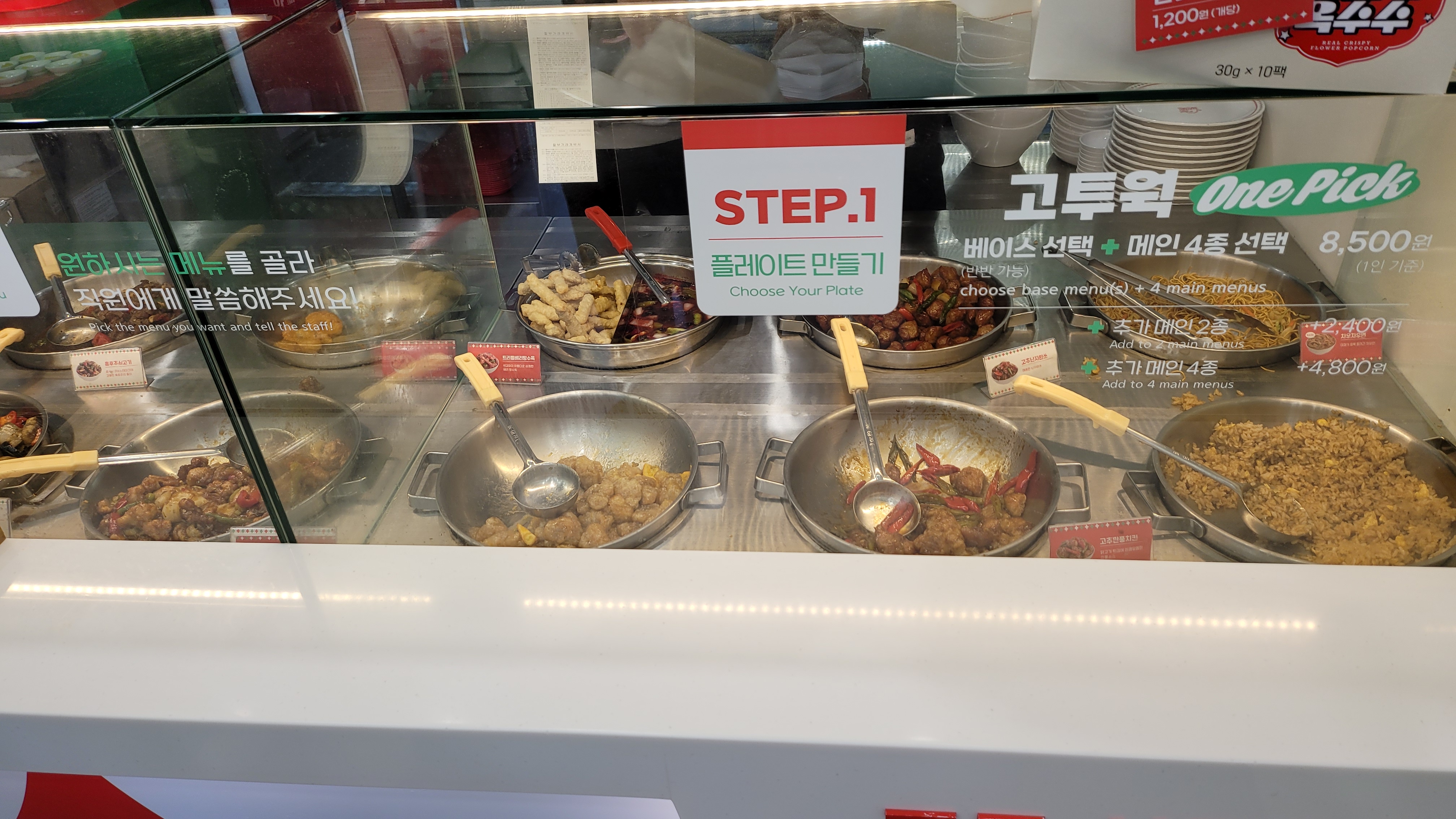 여긴 기다릴 필요 없이 바로 음식이 나오는 구조인데요. 고른 거 담아주면 끝.
