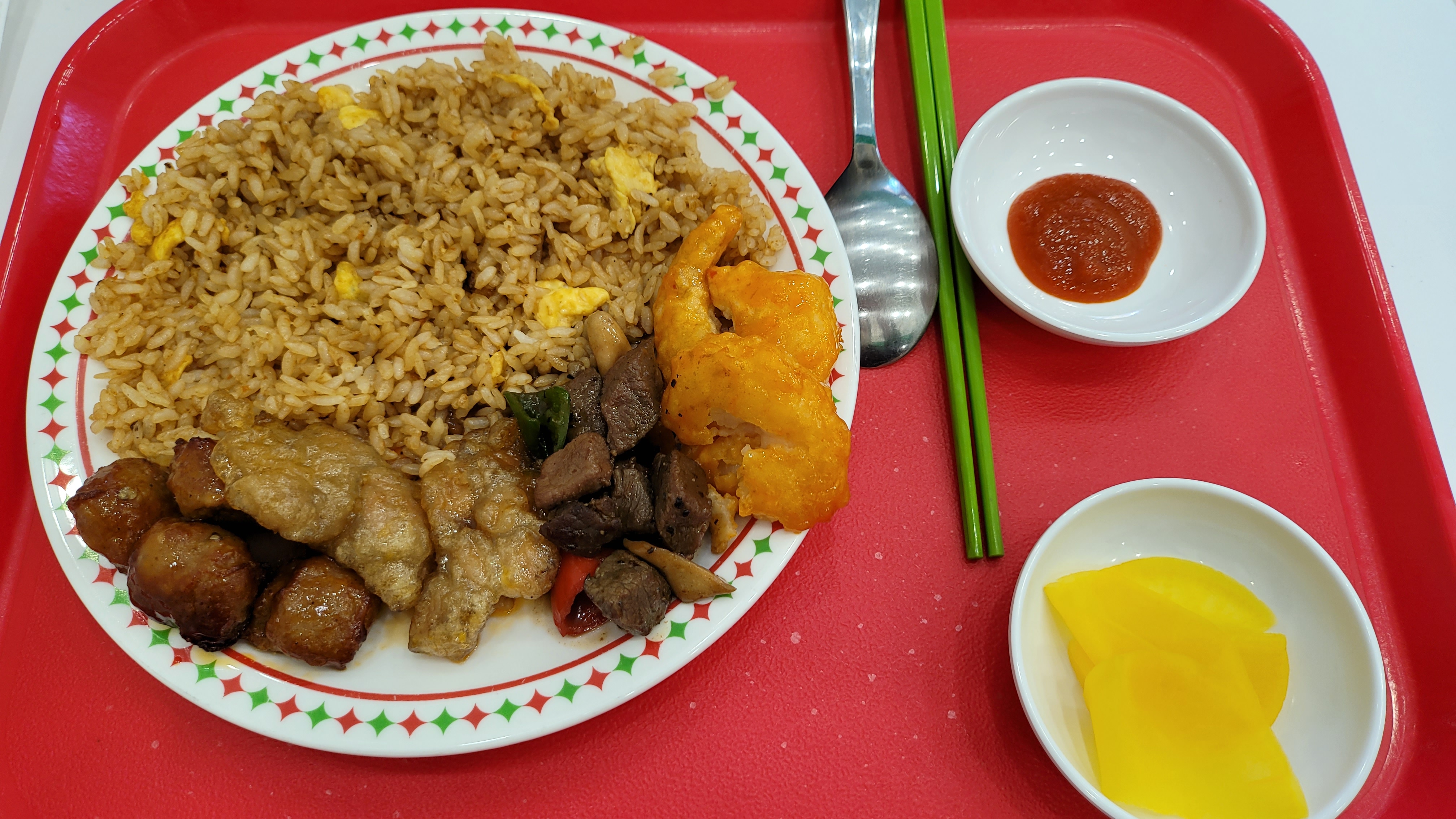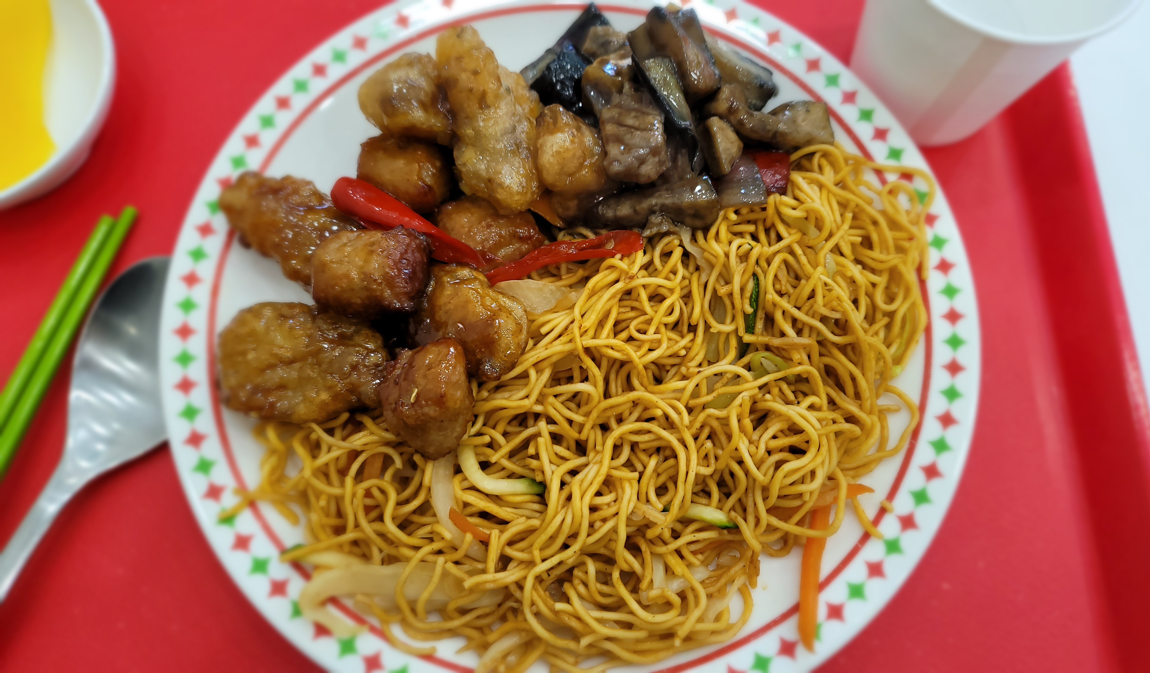 저는 면과 오렌지 탕수육, 난자완스, 가지볶음, 또 다른 탕수육 이렇게 골랐습니다.