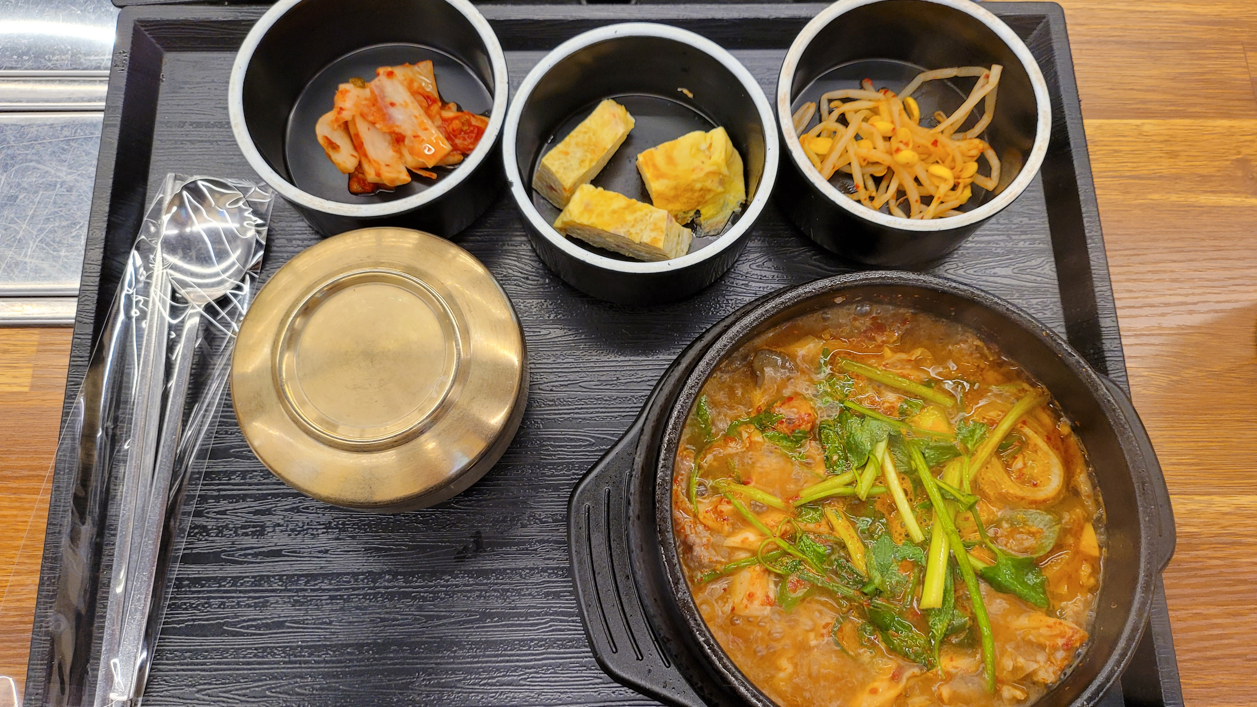이렇게 1인 상차림으로 나오니까 깔끔해서 좋습니다. 계란말이나 기타 반찬들은 셀프로 보충이 가능합니다.