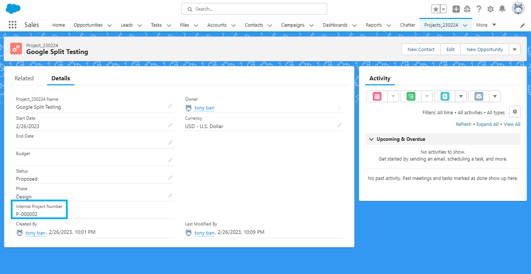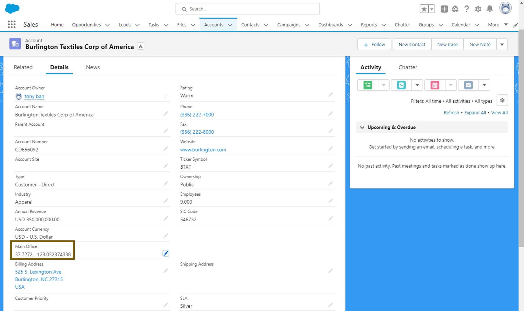 적용이 잘 됐는지 'Sales' 어플리케이션 - Account'로 가서 체크해 보겠습니다.