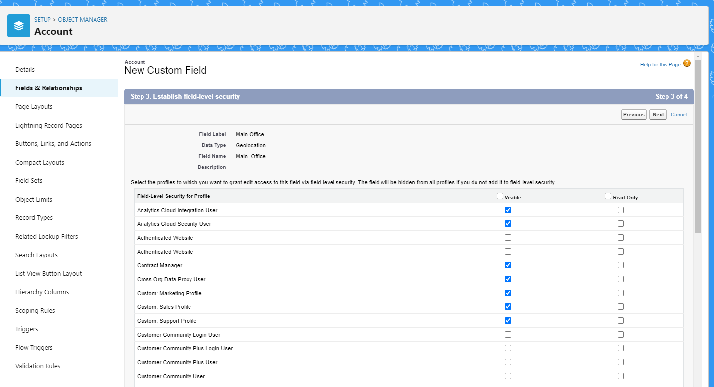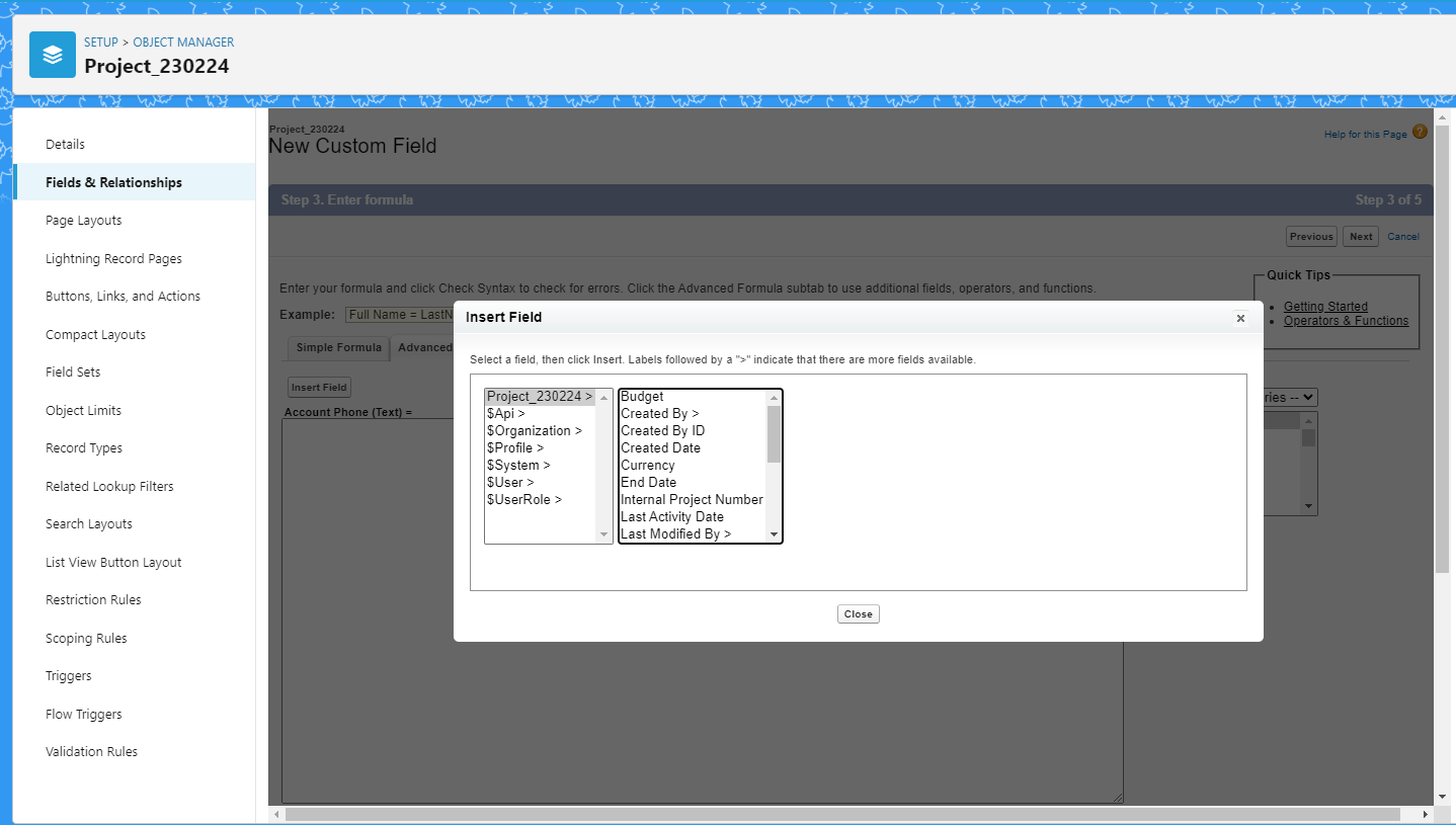 | [세일즈포스 독학] 9. 페이지 레이아웃 수정, 픽리스트 필드 생성, 필드 종속성 테스트 (0) | 2023.02.24 |