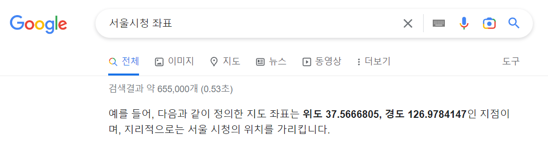 참고로 서울 시청의 좌표는 위도 37.567, 경도 126.978 이네요. 세일즈포스 같은 CRM 솔루션에서 지도 정보(좌표)를 활용한 Geolocation은 많이 쓰이는 기능이니 참고하시면 좋을 것 같습니다.