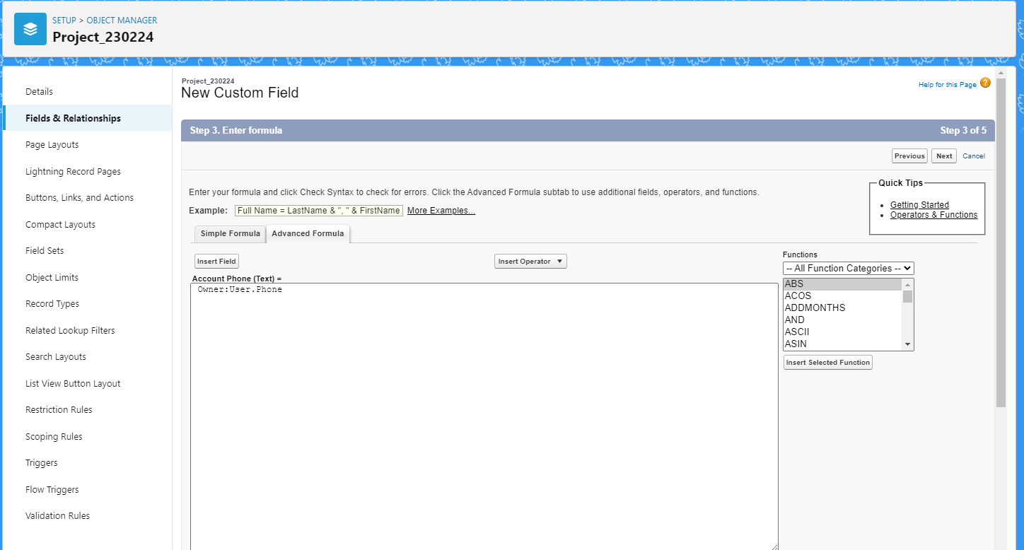 Formula 필드 만들기