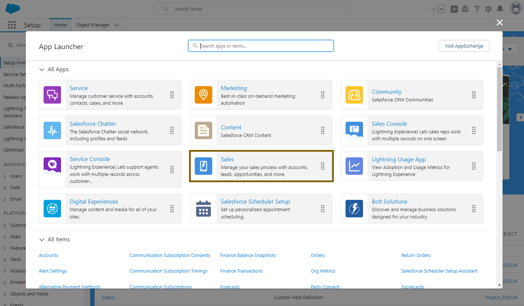먼저 오브젝트 매니저에서 'Account'를 클릭합니다.